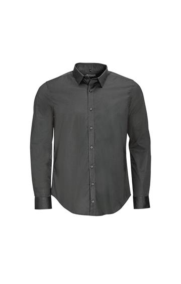 Corte ajustado - Mangas largas - Cuello clásico moderno - Puños con 2 botones y abertura con tapeta en punta - Tapeta de 8 botones tono sobre tono - 2 pinzas en la parte trasera