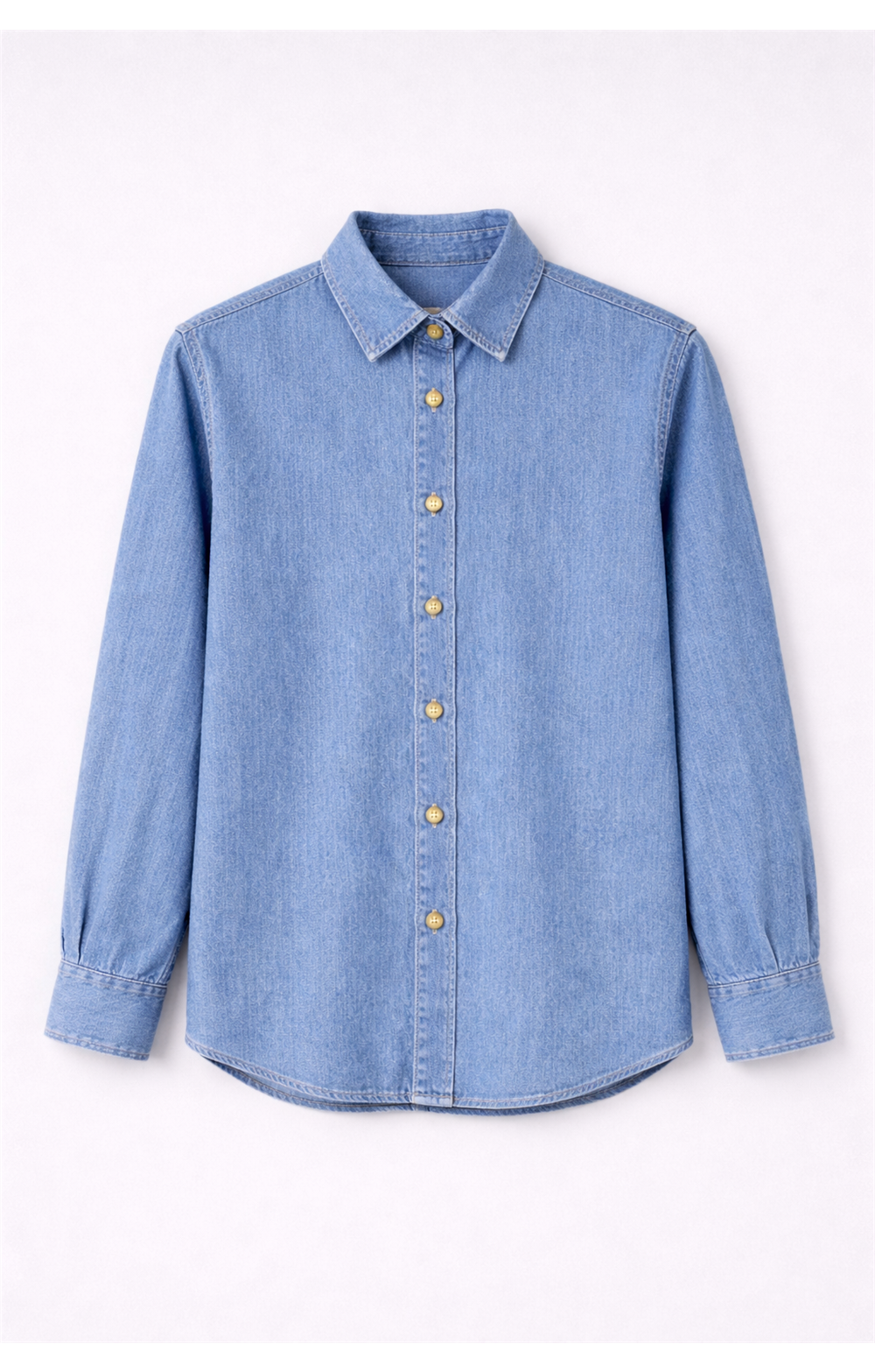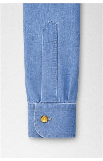 Camisa vaquera - Manga larga - Botón en el cuello - Dos pinzas en espalda