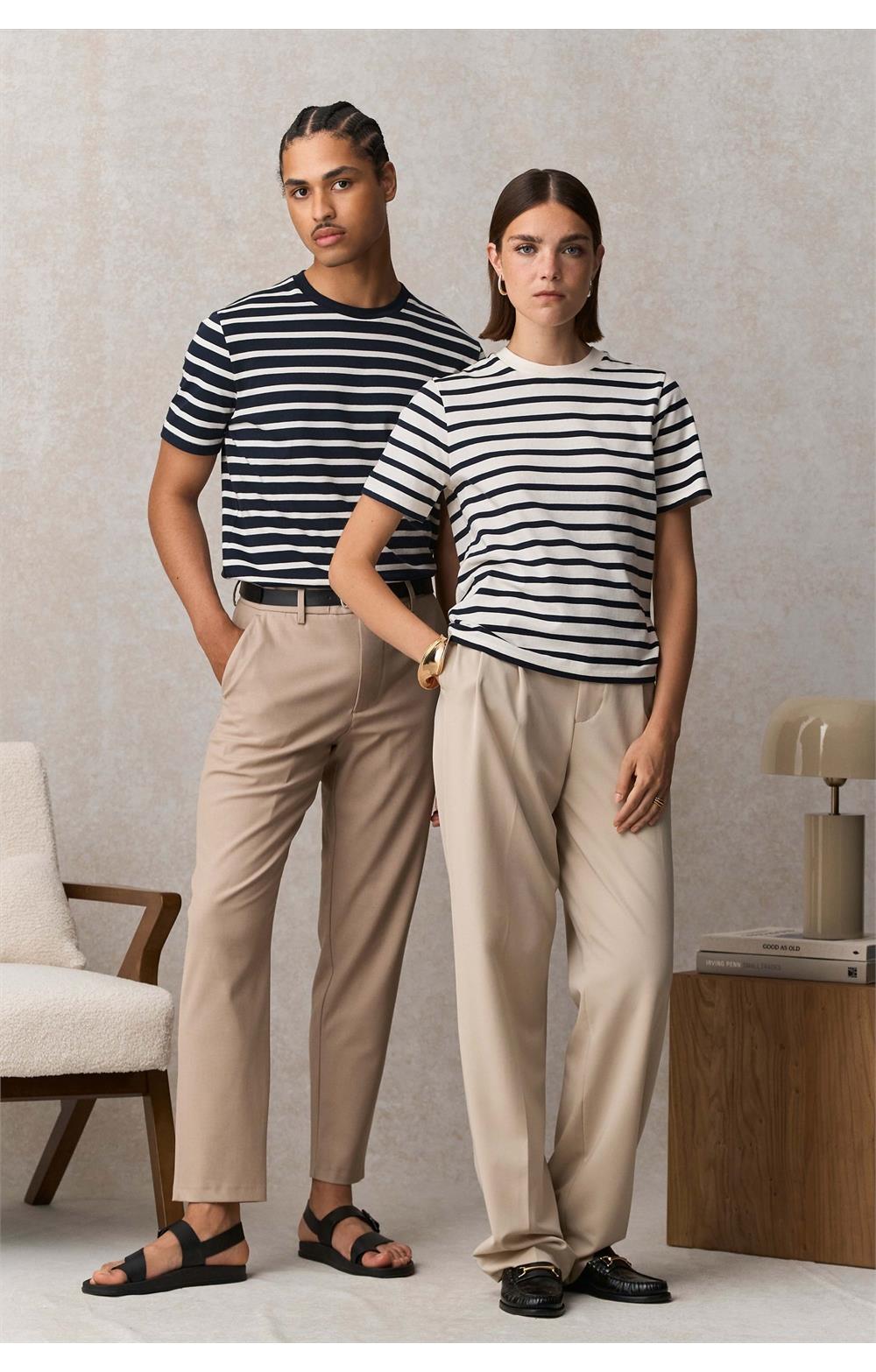Cuello redondo acanalado - Tapacosturas en el cuello - Cortada y cosida - Corte moderno y cómodo