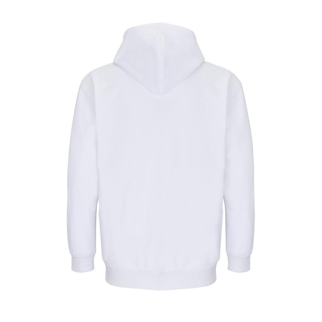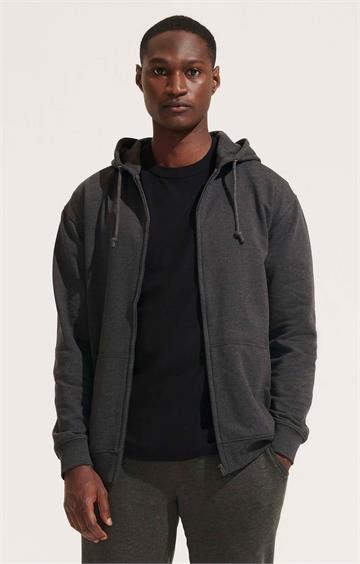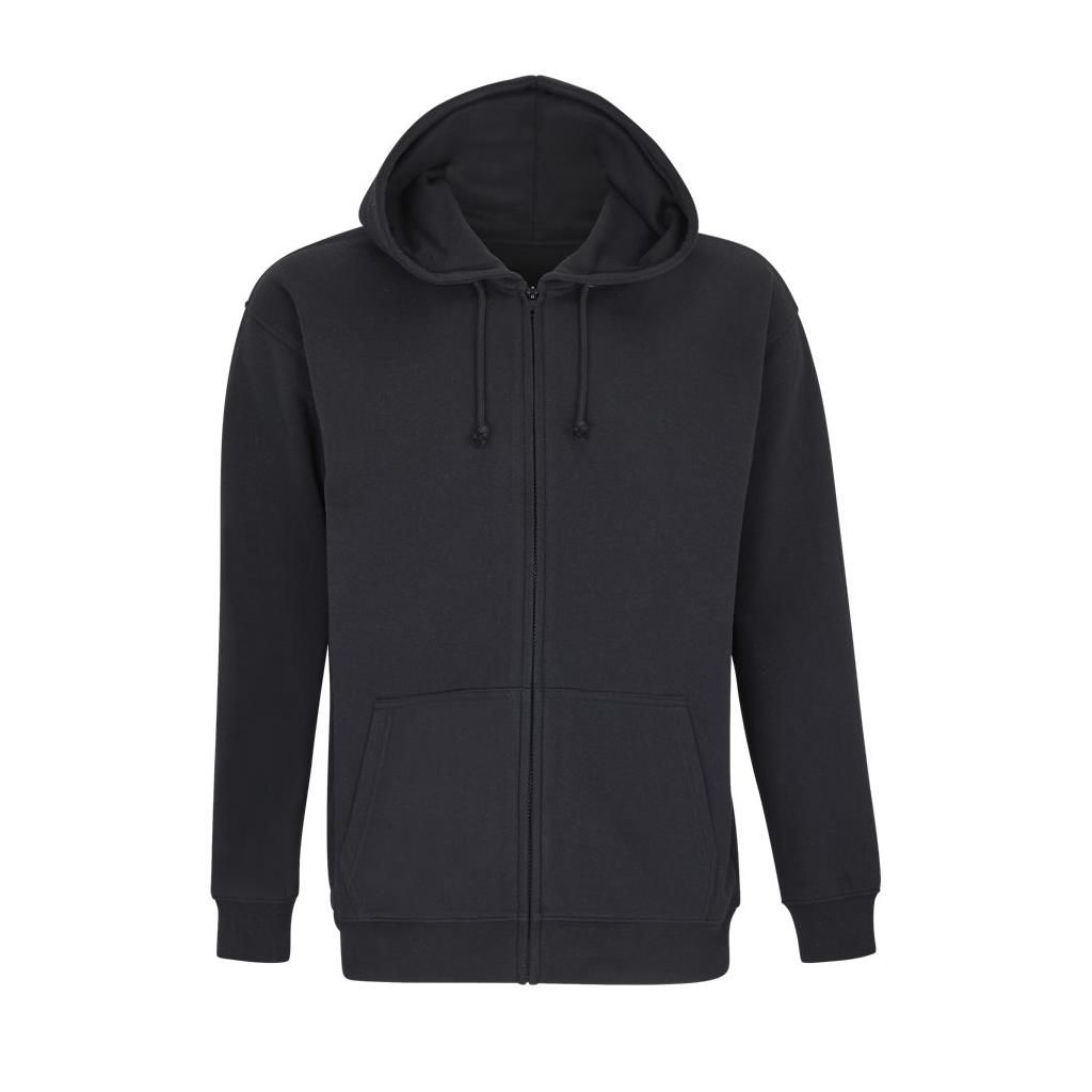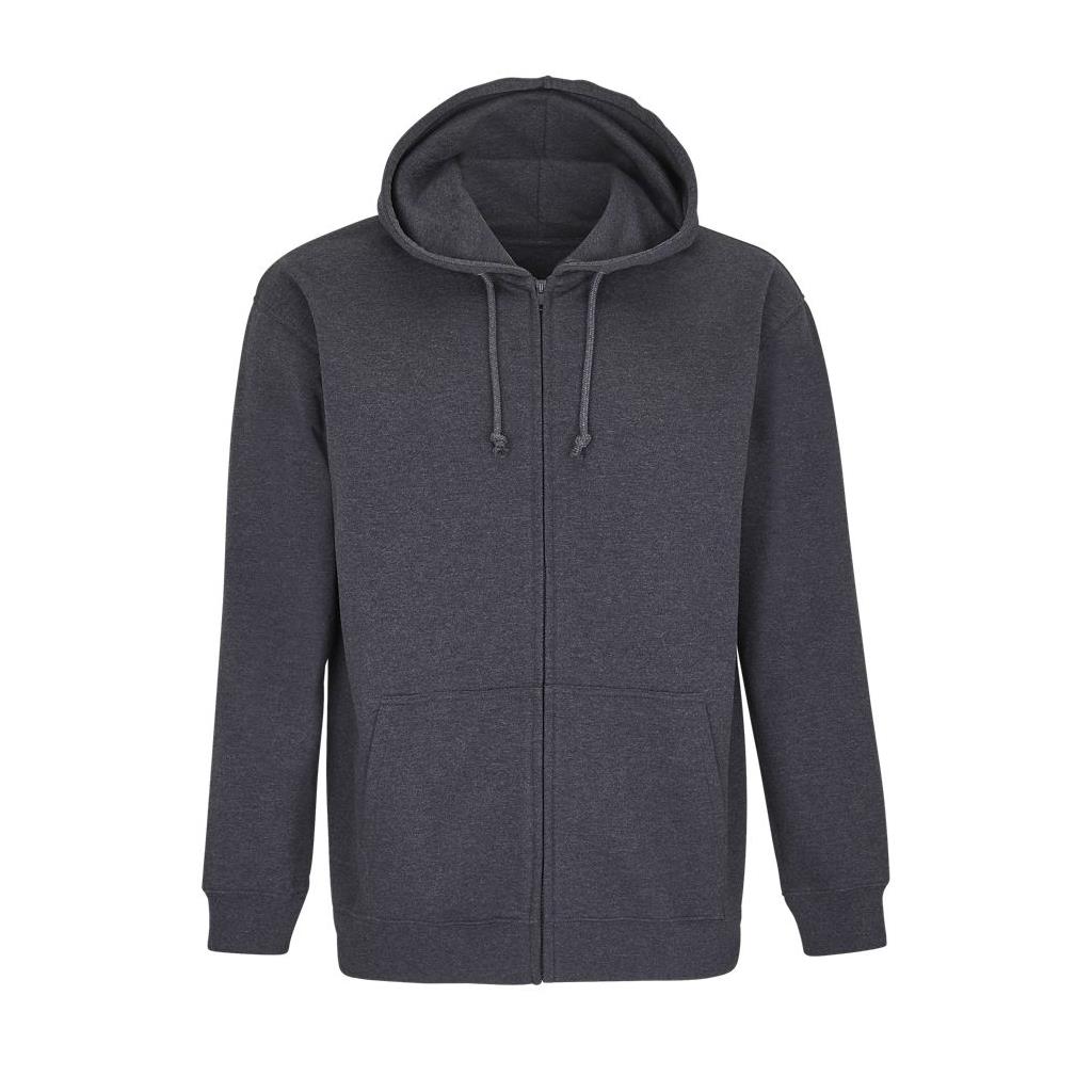 Mangas montadas - Cortada y cosida - Acabado de acanalé 1x1 en puños y bajo - Bolsillo canguro - Capucha forrada con cordón de ajuste tono sobre tono y ojales de metal - Abertura con cremallera oculta - Cremallera inyectada de plástico tono sobre tono con tirador de metal tono sobre tono - Media luna y tapacosturas de punto liso en el cuello