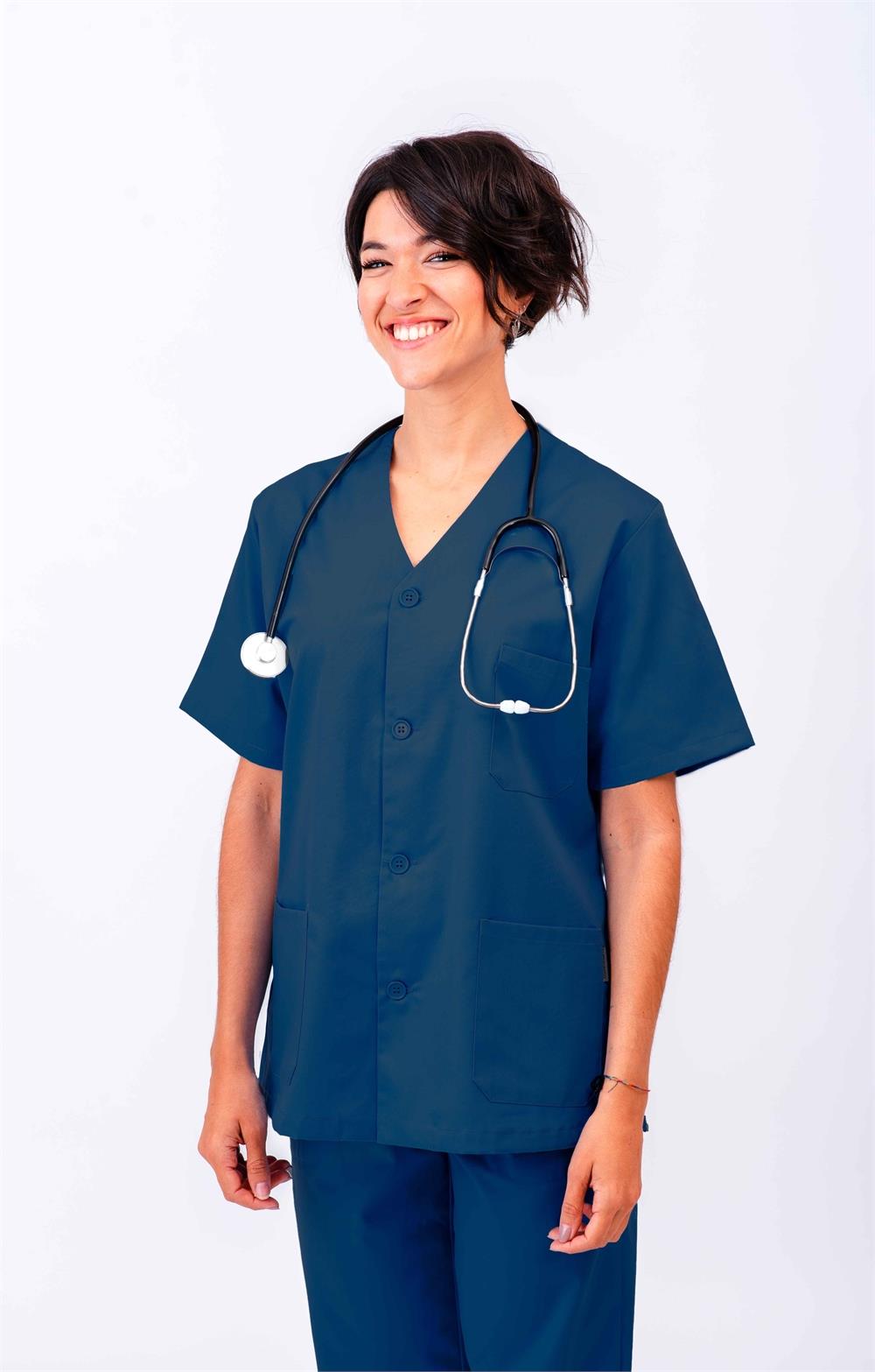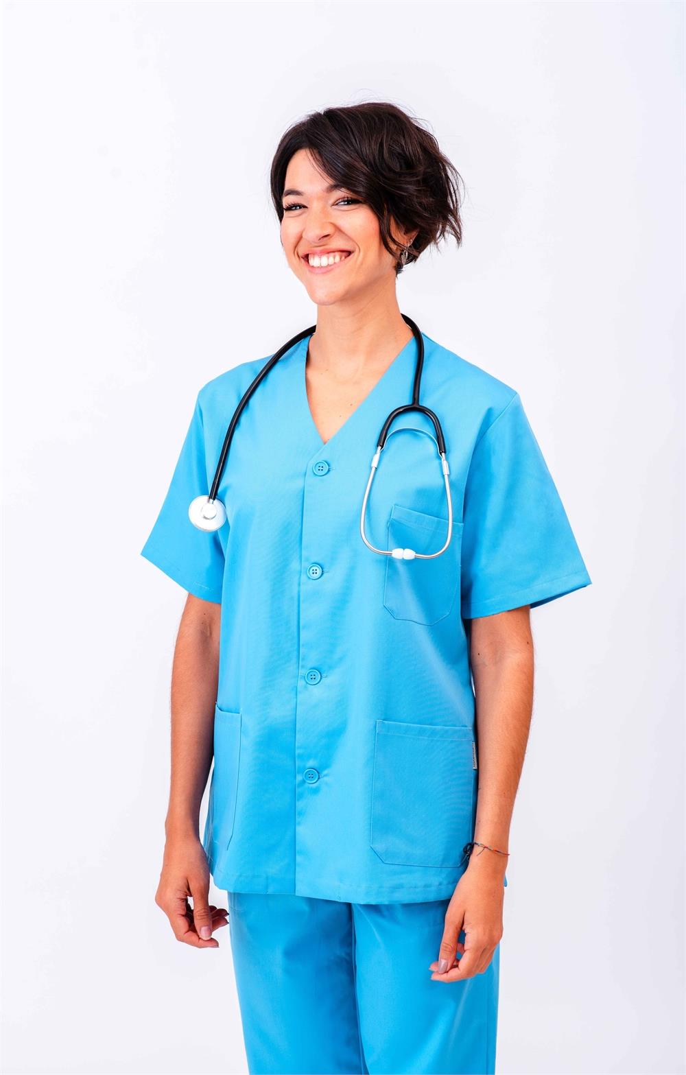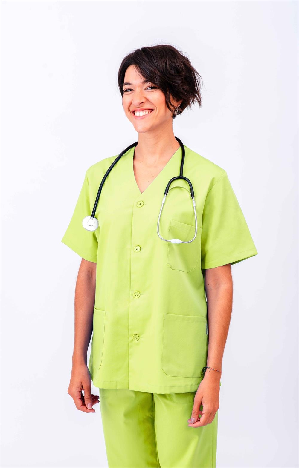 Casaca sanitaria abierta cuello pico