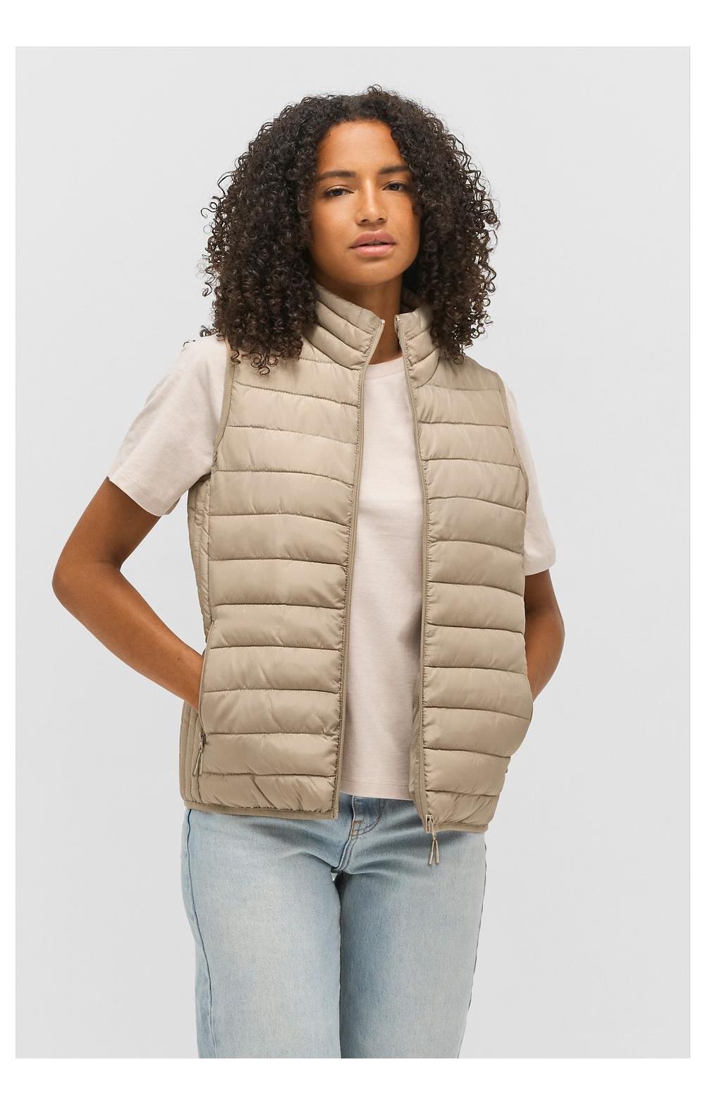 Abertura y bolsillos laterales con cremallera de nylon tono sobre tono - Cursor de metal tono sobre tono con tirador de cremallera de fantasía negro - Cuello alto - Bajo y sisas con acabado de bies elástico tono sobre tono - Bolsa para guardar la prenda .