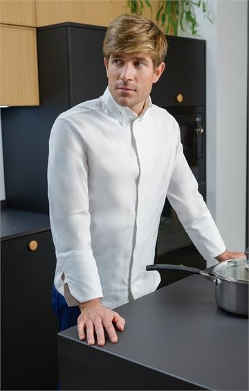 Costadillos transpirables. Broches en cuello y puño. Broches centrales ocultos y bolsillo con vivo en manga.