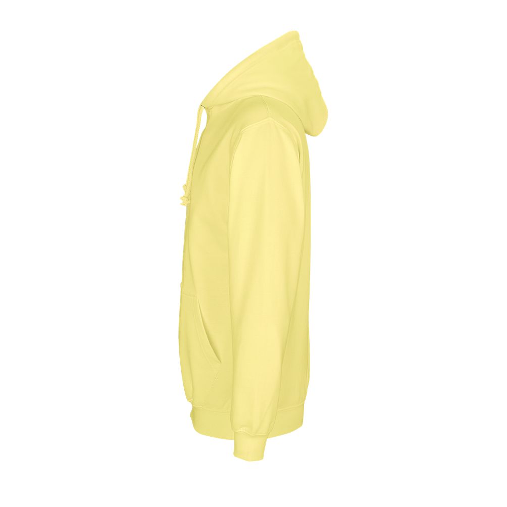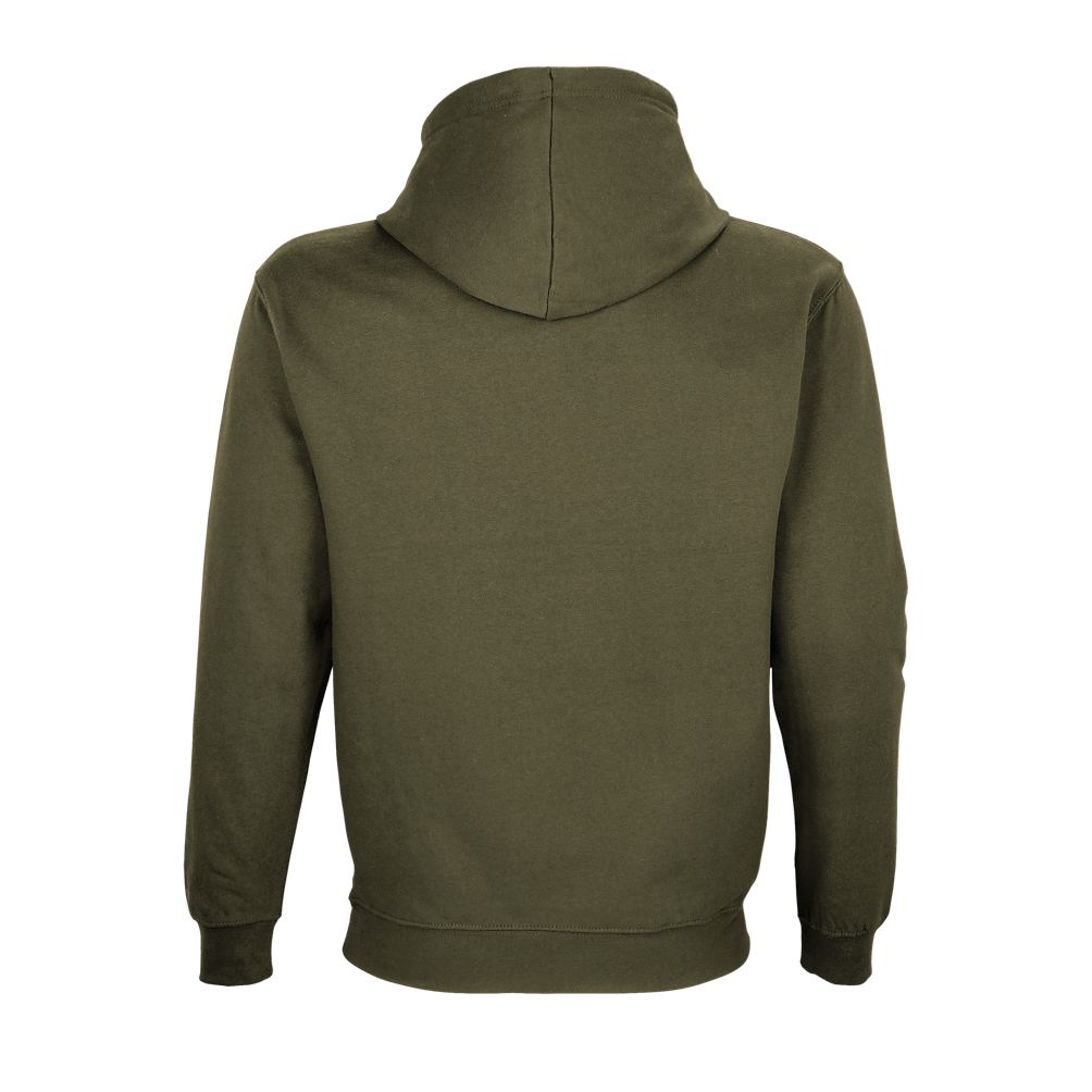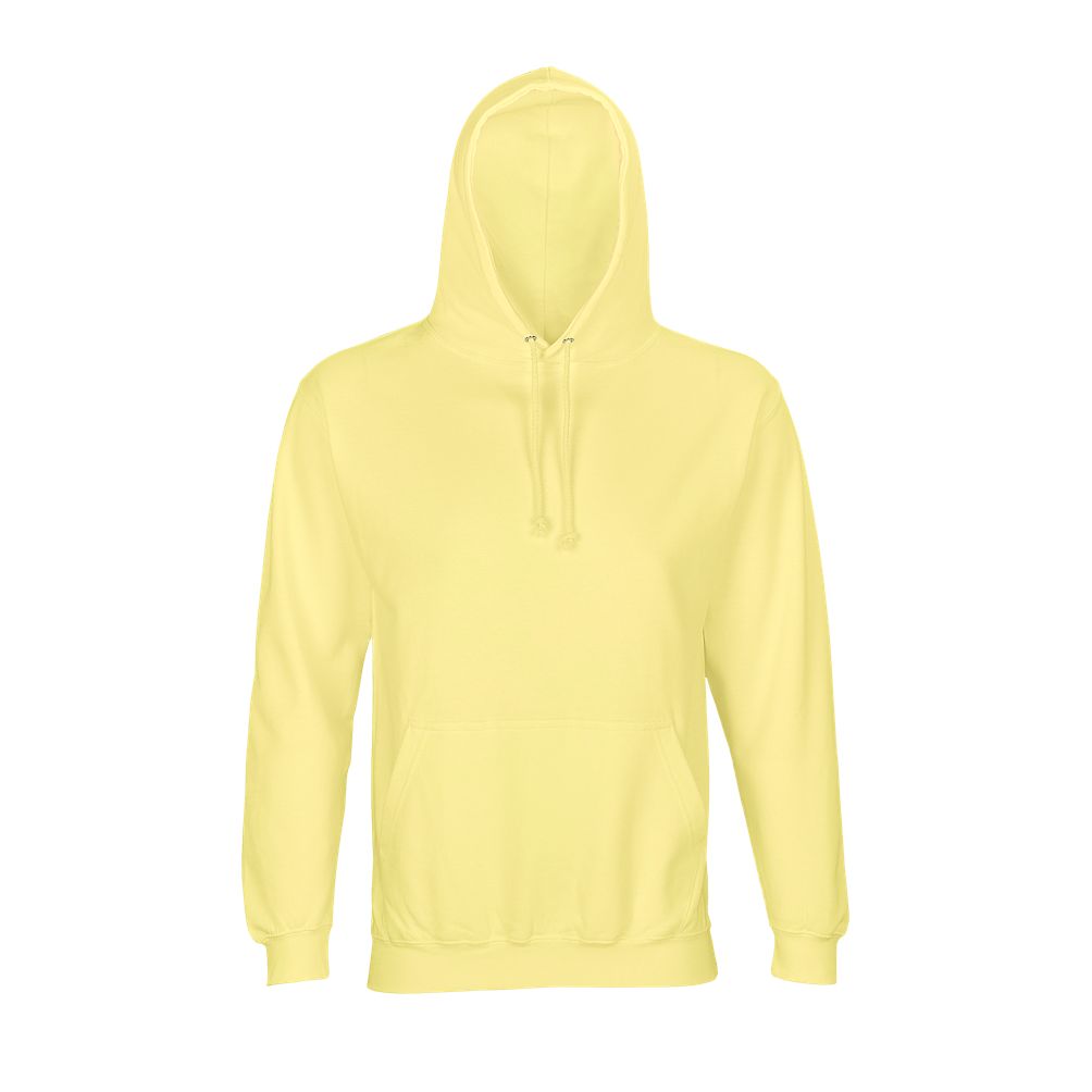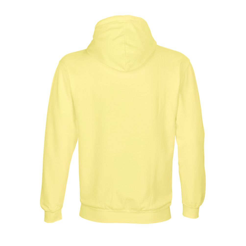 Mangas montadas - Cortada y cosida - Acabado de canalé 1x1 en puños y bajo - Bolsillo canguro - Capucha forrada con cordón de ajuste tono sobre tono y ojales de metal - Media luna y tapacosturas de punto liso en el cuello
