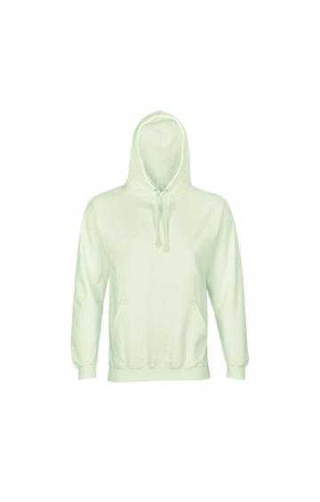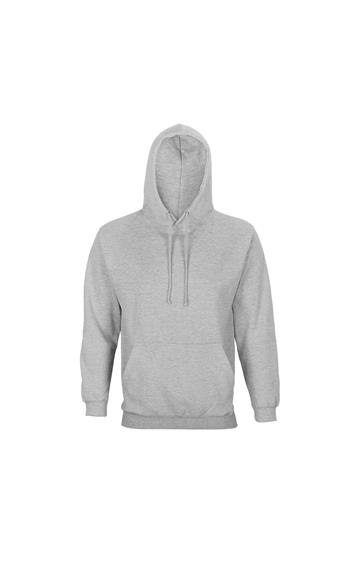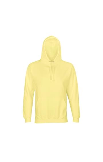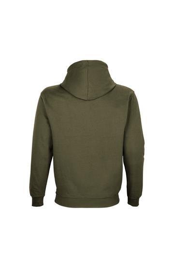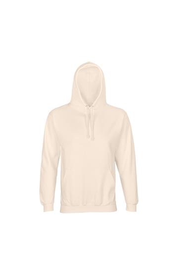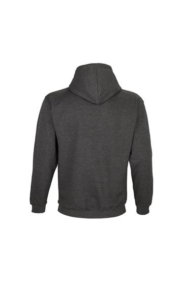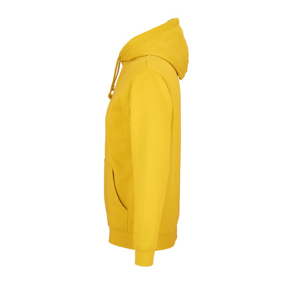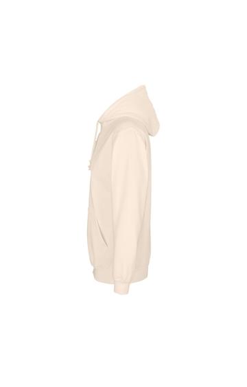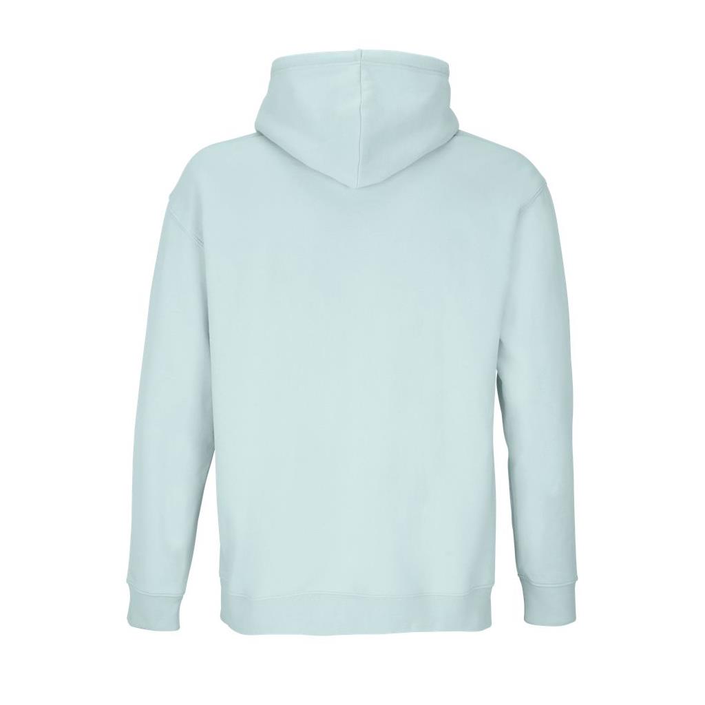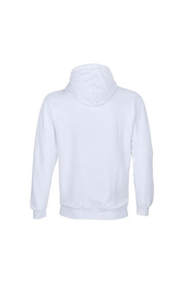 Mangas montadas - Cortada y cosida - Acabado de canalé 1x1 en puños y bajo - Bolsillo canguro - Capucha forrada con cordón de ajuste tono sobre tono y ojales de metal - Media luna y tapacosturas de punto liso en el cuello