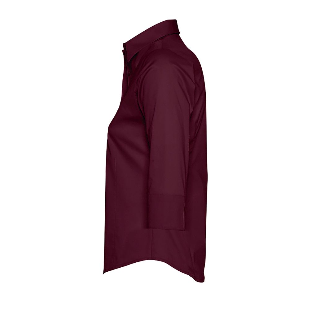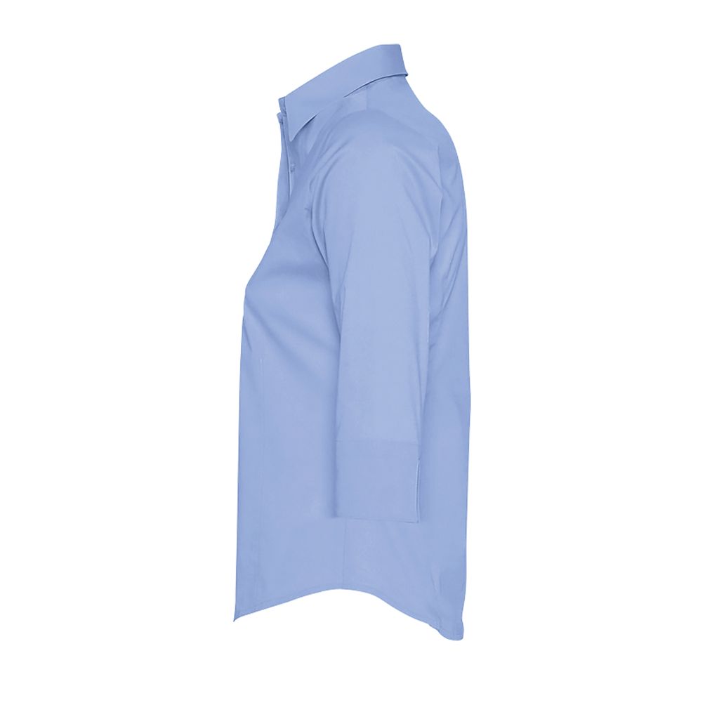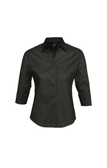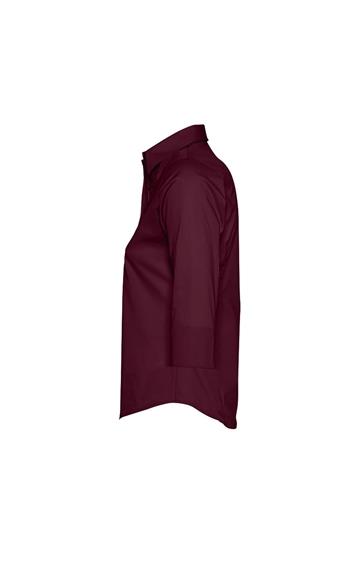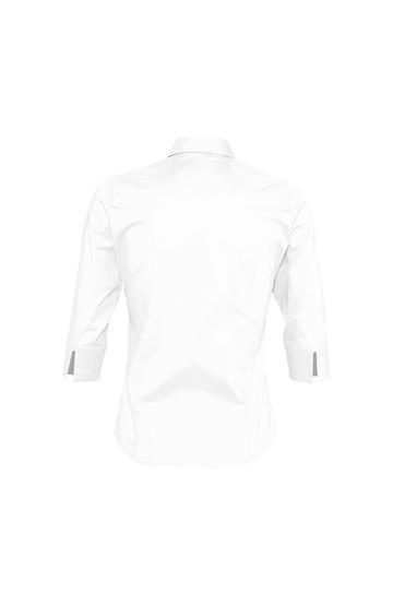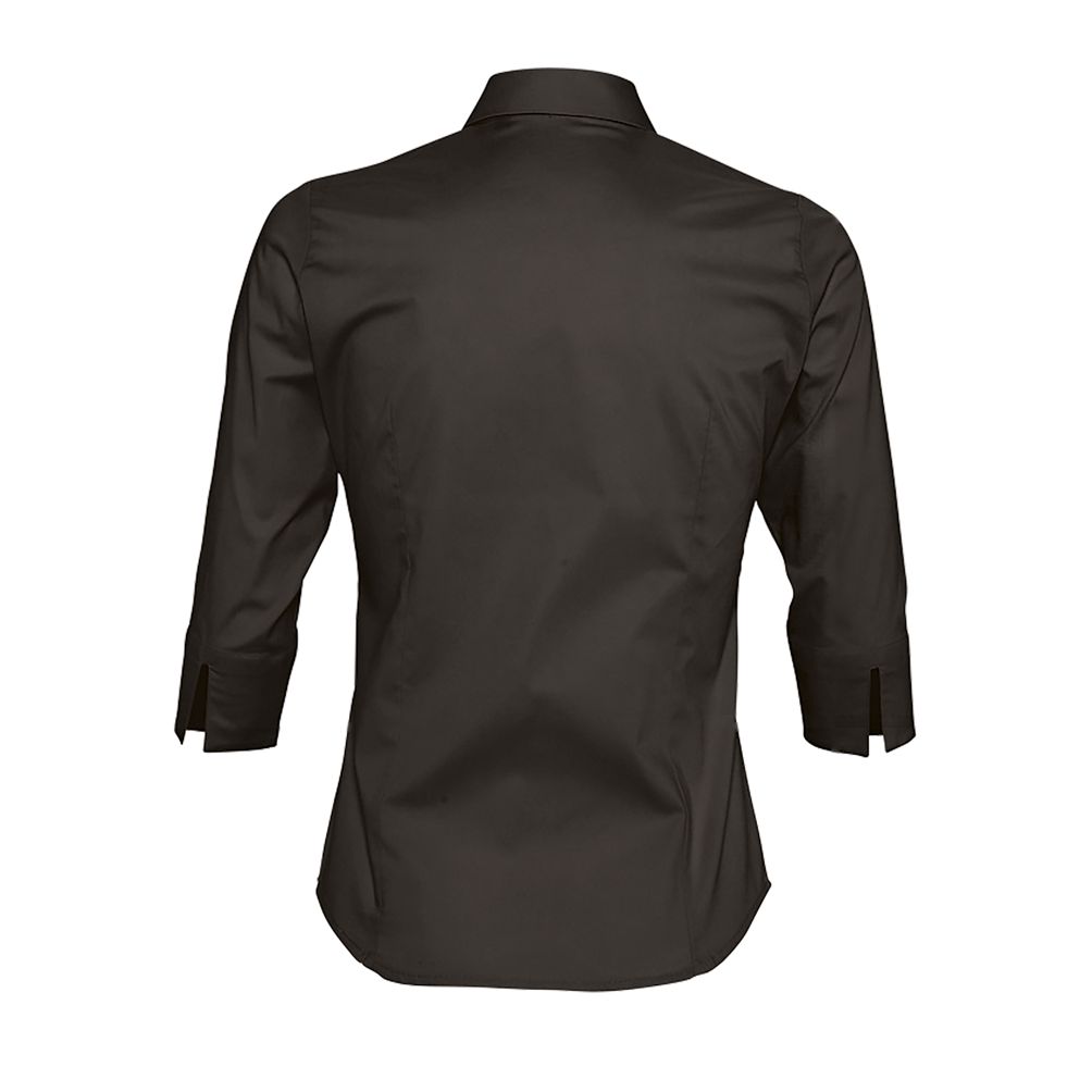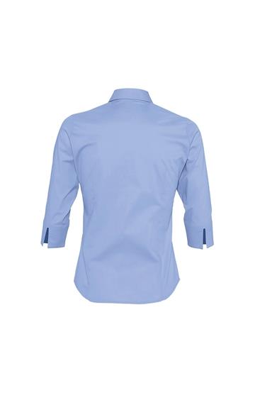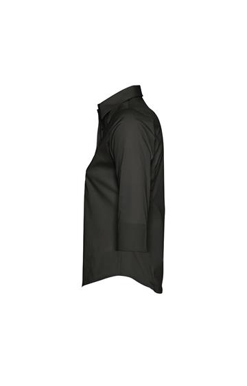 Corte ceñido - Mangas 3/4 con vuelta y abertura - Cuello con un solo botón - Tapeta de 7 botones tono sobre tono - Pinzas en la parte delantera y trasera