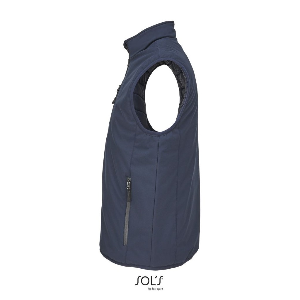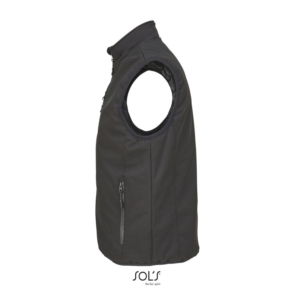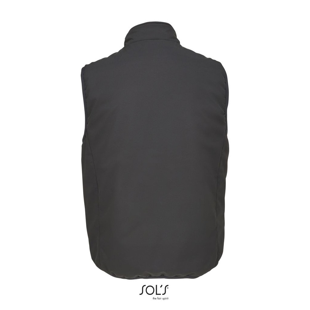 Chaleco totalmente acolchado - Cuello alto forrado con tejido polar - Abertura principal, bolsillos laterales y bolsillo de pecho con cremallera de nylon impermeable negra - 3 bolsillos interiores - Cremallera para la personalización - Sisas y bajo elásticos tono sobre tono .
