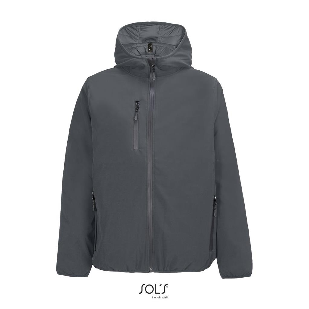 Softshell de invierno totalmente acolchado - Capucha con borde elástico - Abertura, bolsillos laterales y bolsillo de pecho con cremallera de nylon impermeable negra - 3 bolsillos interiores - Cremallera para la personalización - Puños y bajo elásticos tono sobre tono