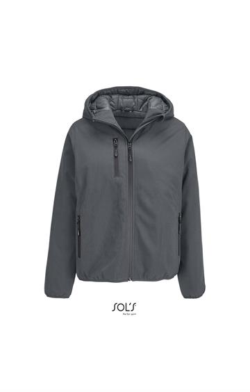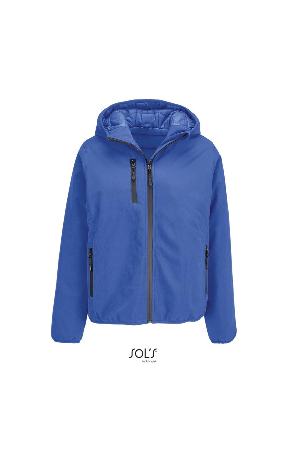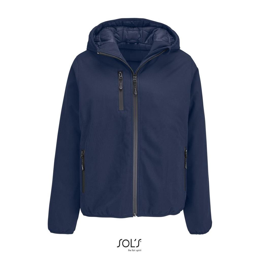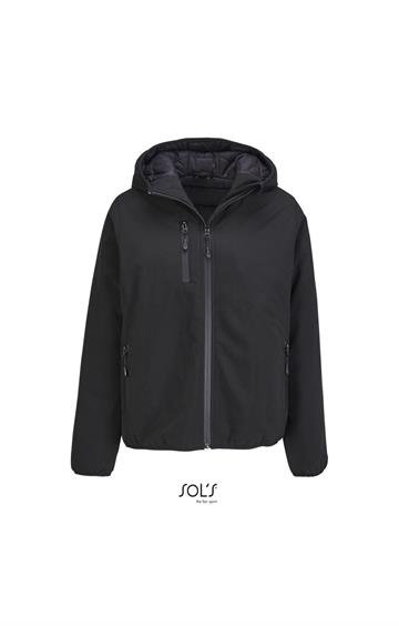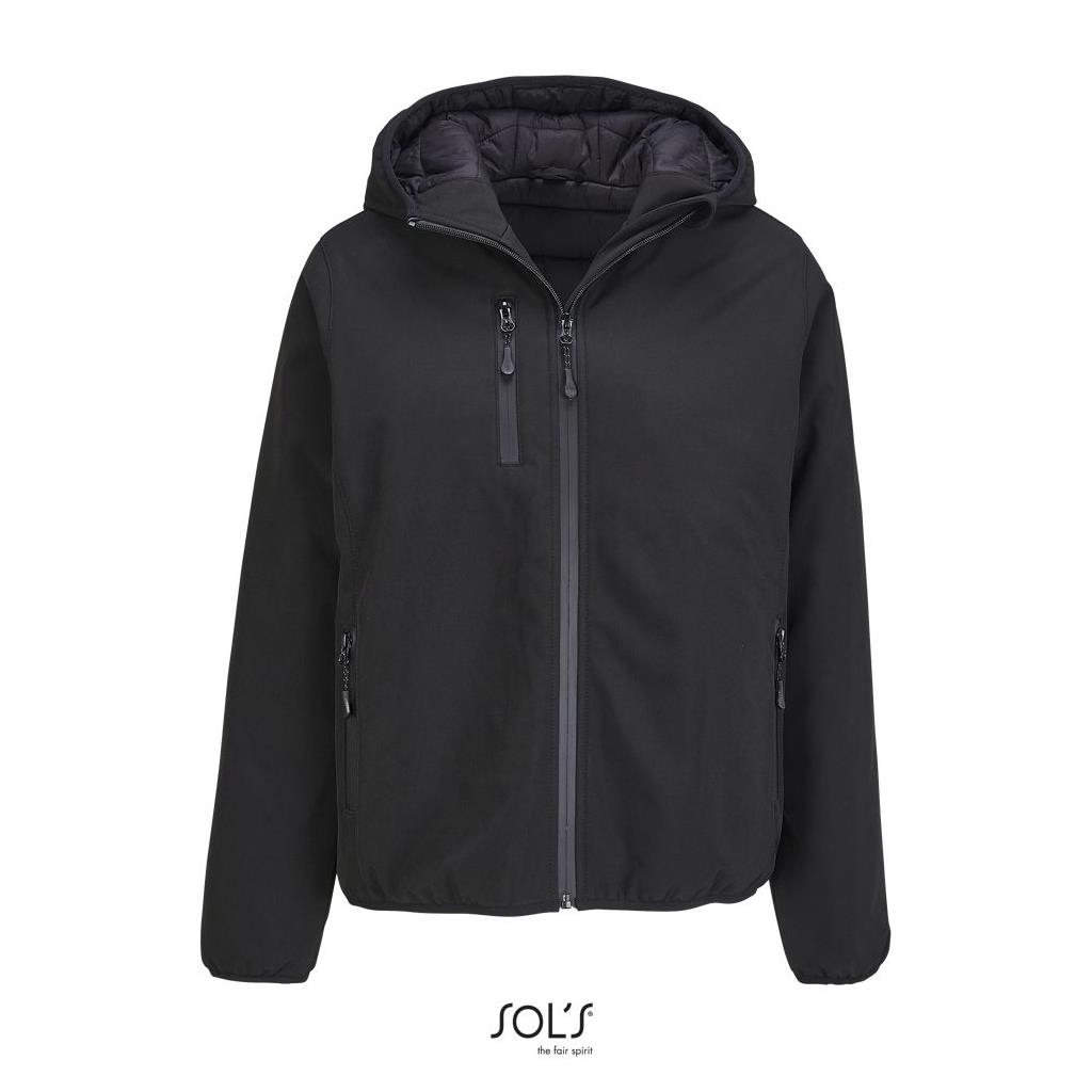 Softshell de invierno totalmente acolchado - Capucha con borde elástico - Abertura, bolsillos laterales y bolsillo de pecho con cremallera de nylon impermeable negra - 3 bolsillos interiores - Cremallera para la personalización - Puños y bajo elásticos tono sobre tono