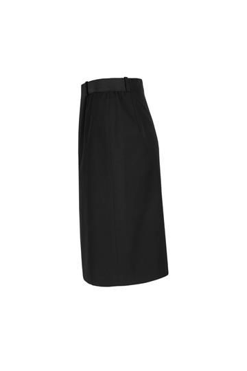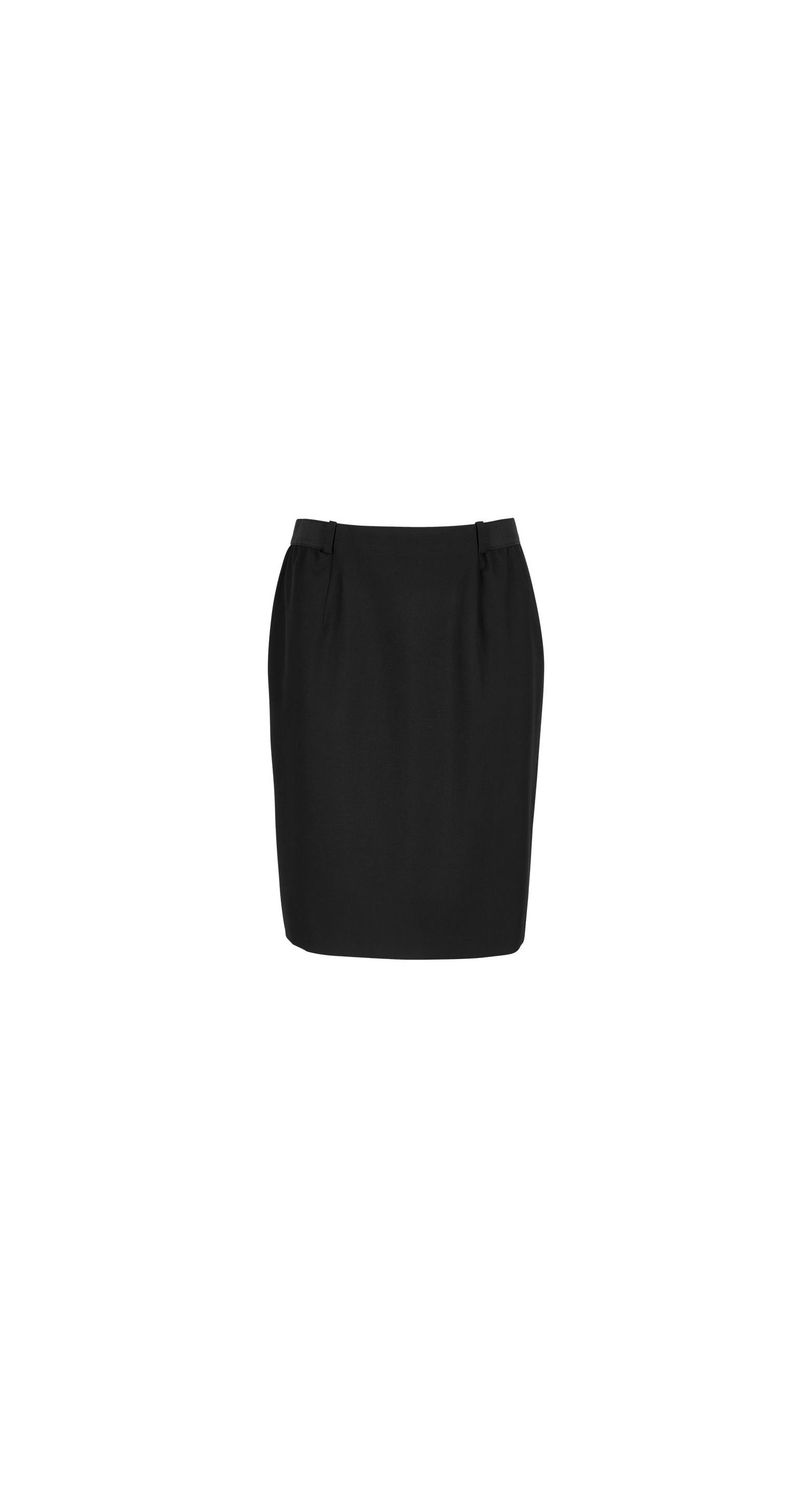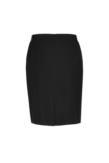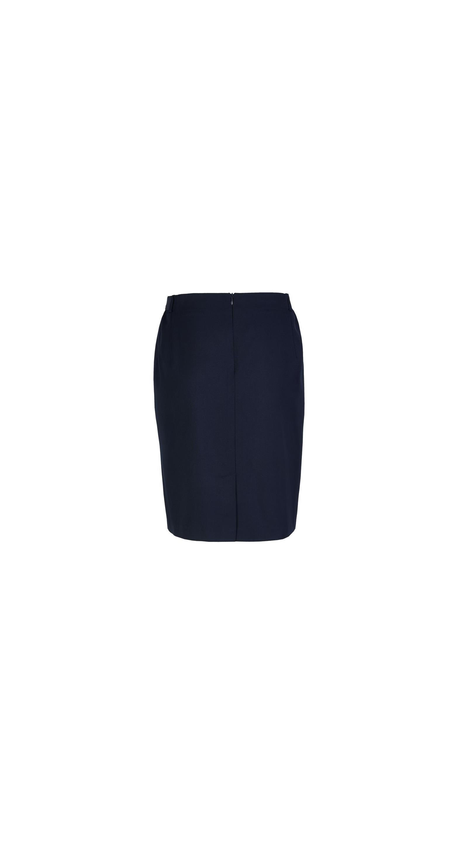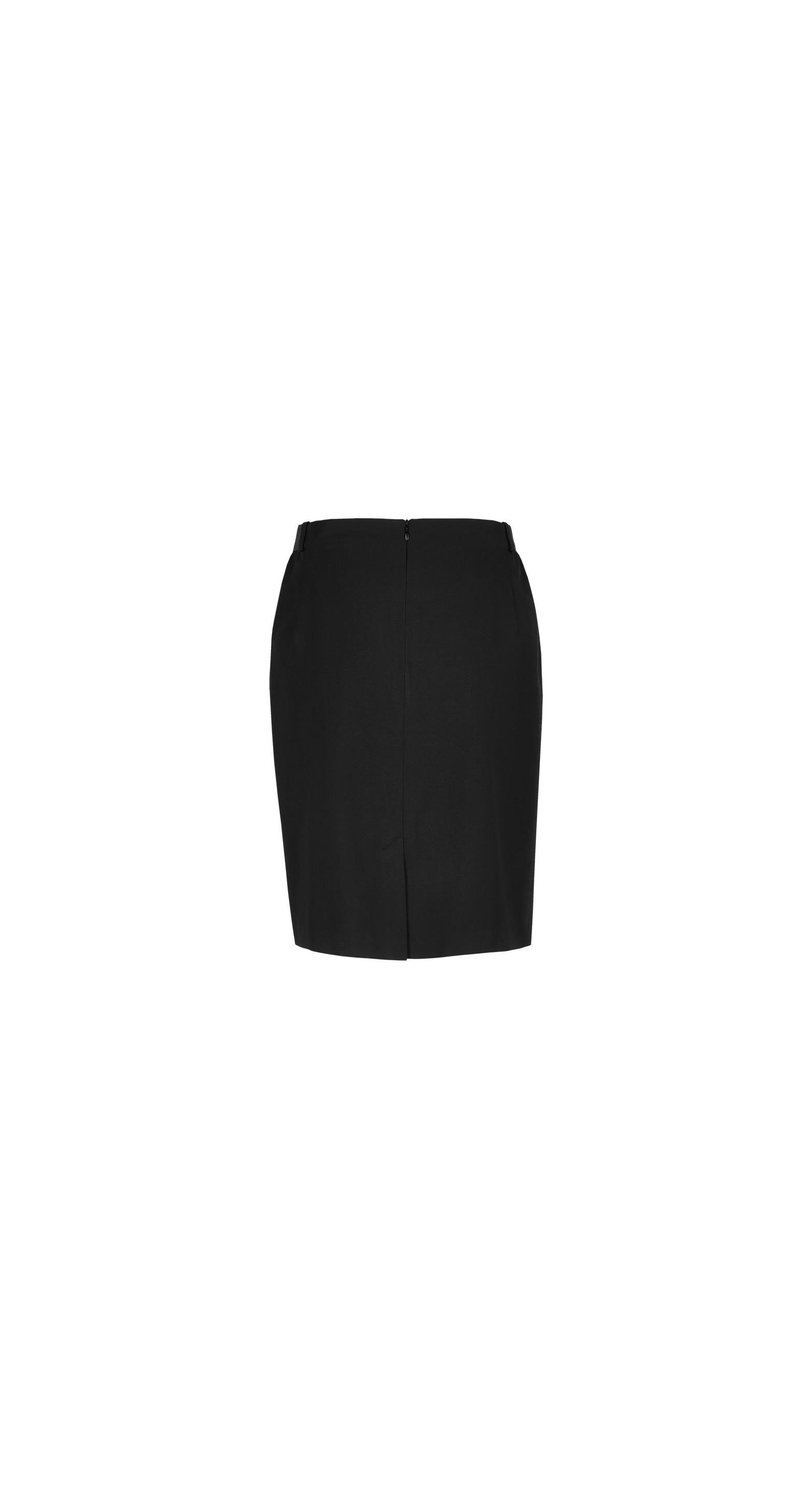 Largo por encima de la rodillaCintura elásticaTrabillas para el cinturónCremallera trasera ocultaAbertura trasera