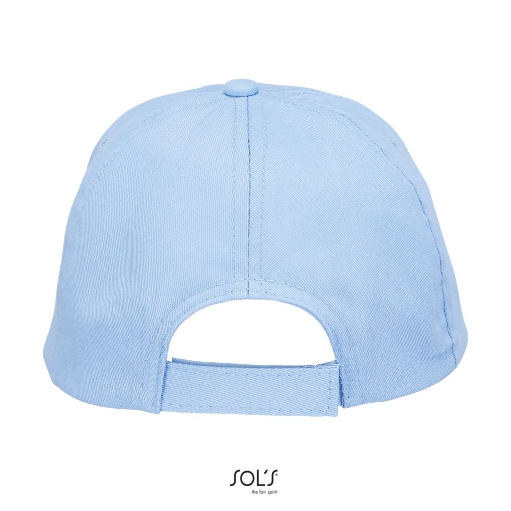 Forma de 5 paneles - Visera precurvada - 2 ojales de ventilación bordados - Cierre trasero ajustable por tira de velcro - Pensada para los más pequeños, realizada con sentido común. - La gorra de niño SOL’S BUZZ KIDS combina simplicidad, precio bajo y calidad. Hecha de algodón, es cómoda, ligera y responde perfectamente a las necesidades de los niños. Fácil de personalizar, es ideal para excursiones escolares, eventos o proyectos asociativos. Una solución práctica y asequible, sin renunciar a la comodidad.