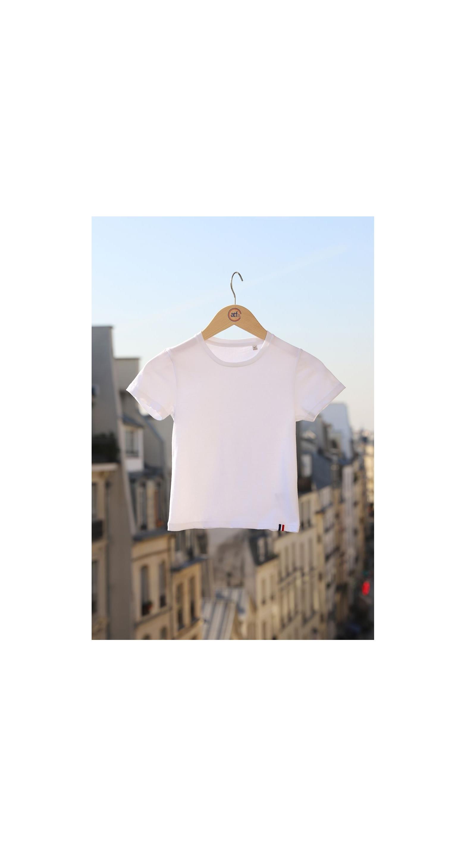 Col rond - Bande de propreté au col - Coupé cousu - Détail tricolore en bas du corps