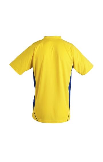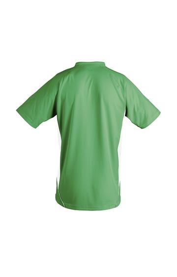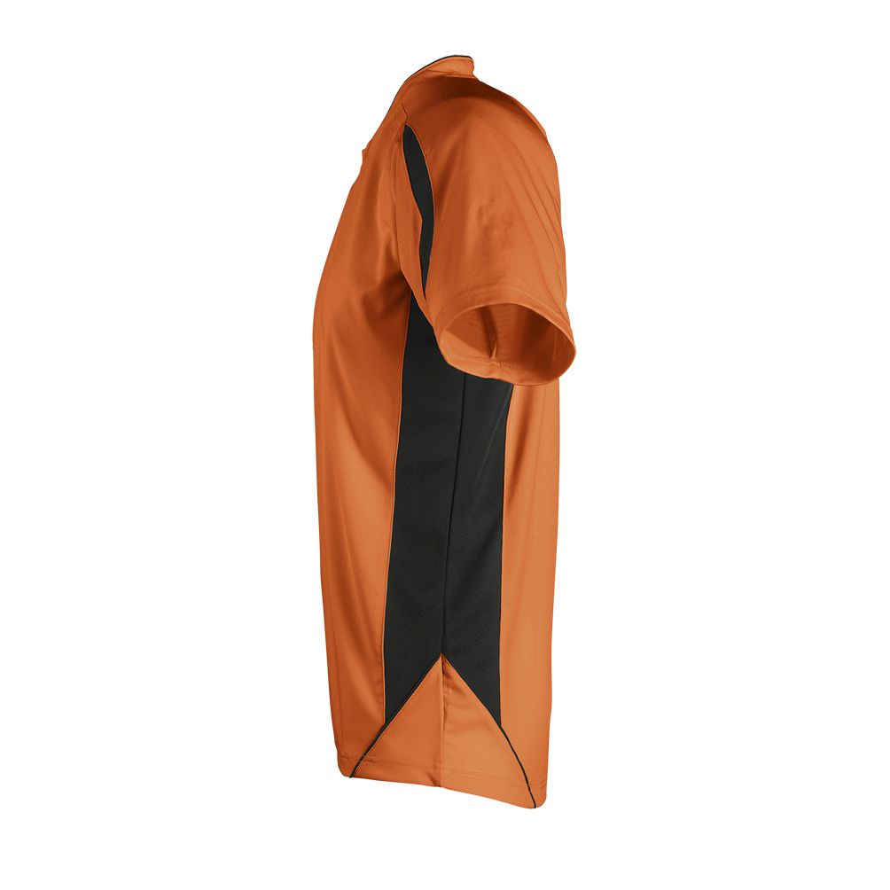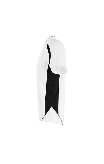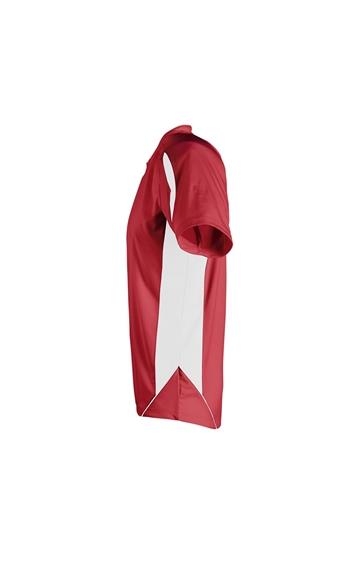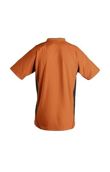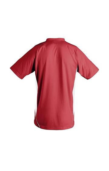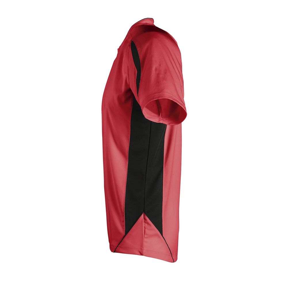 Cuello inglés cerrado contrastado - Mangas raglán - Grandes canesúes en tejido “nido de abejas” sobre los lados transpirable sobre las mangas, garantizando una regularización de la transpiración - Faldón de atras redondeado y ligeramente alargado - Costuras reforzadas - Manga corta