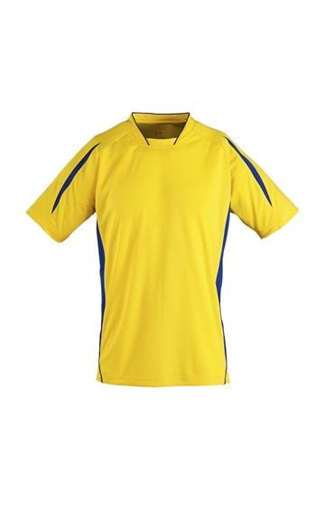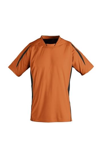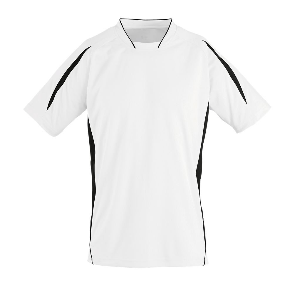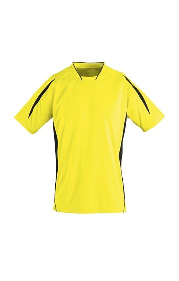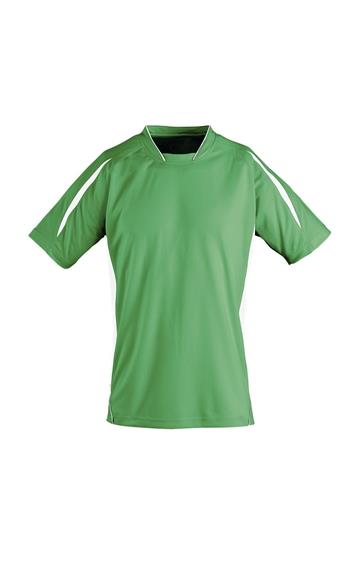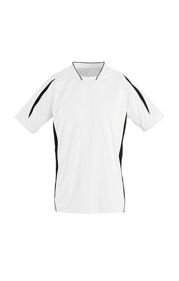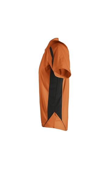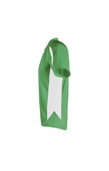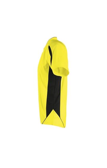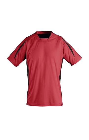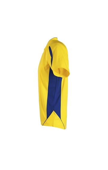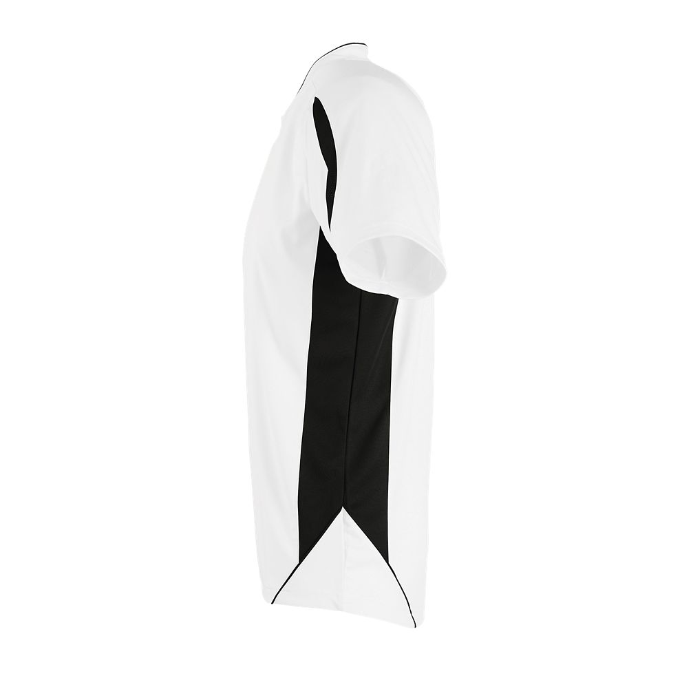 Cuello inglés cerrado contrastado - Mangas raglán - Grandes canesúes en tejido “nido de abejas” sobre los lados transpirable sobre las mangas, garantizando una regularización de la transpiración - Faldón de atras redondeado y ligeramente alargado - Costuras reforzadas - Manga corta