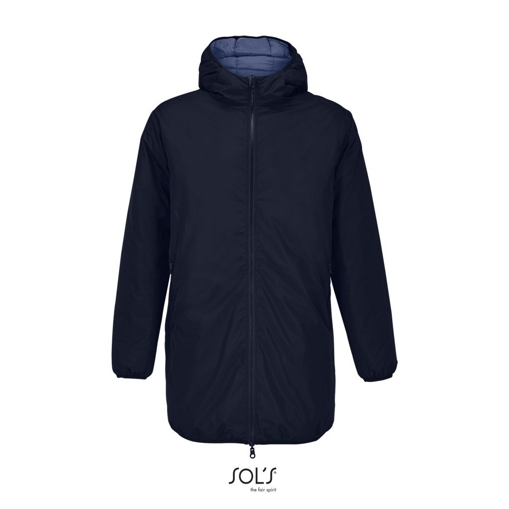 Chaqueta de longitud media reversible - Interior estilo chaqueta acolchada - Capucha con borde elástico - Abertura principal con cremallera inyectada reversible de doble cursor - Bolsillos exteriores con cremallera inyectada tono sobre tono - Bolsillos interiores con cremallera inyectada tono sobre tono y solapa - Puños y bajo elásticos - Cremallera para la personalización - Corte cómodo - Combinaciones de colores: negro y gris oscuro, french marino y denim, army y negro. .