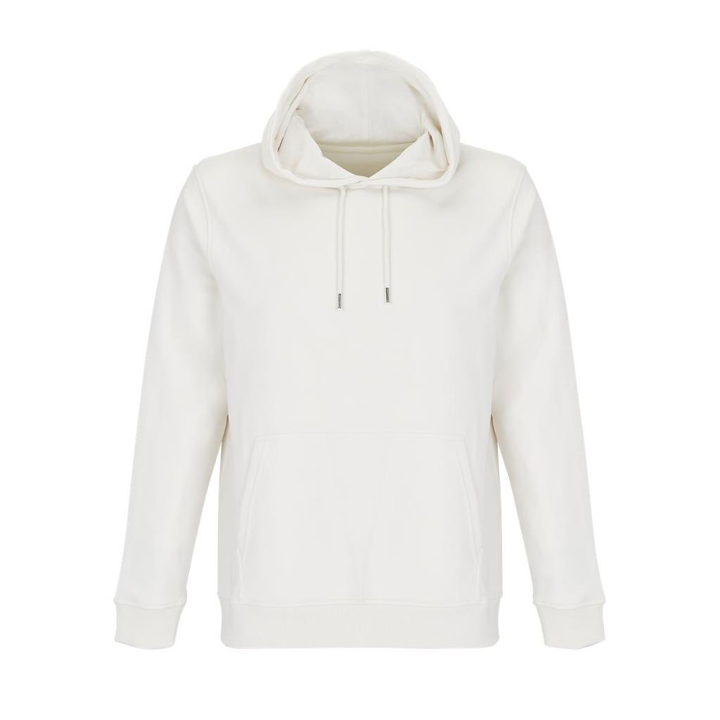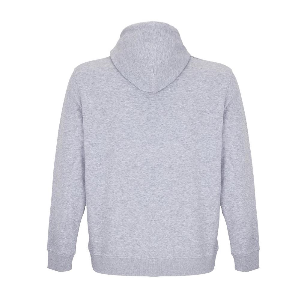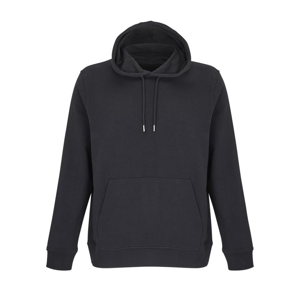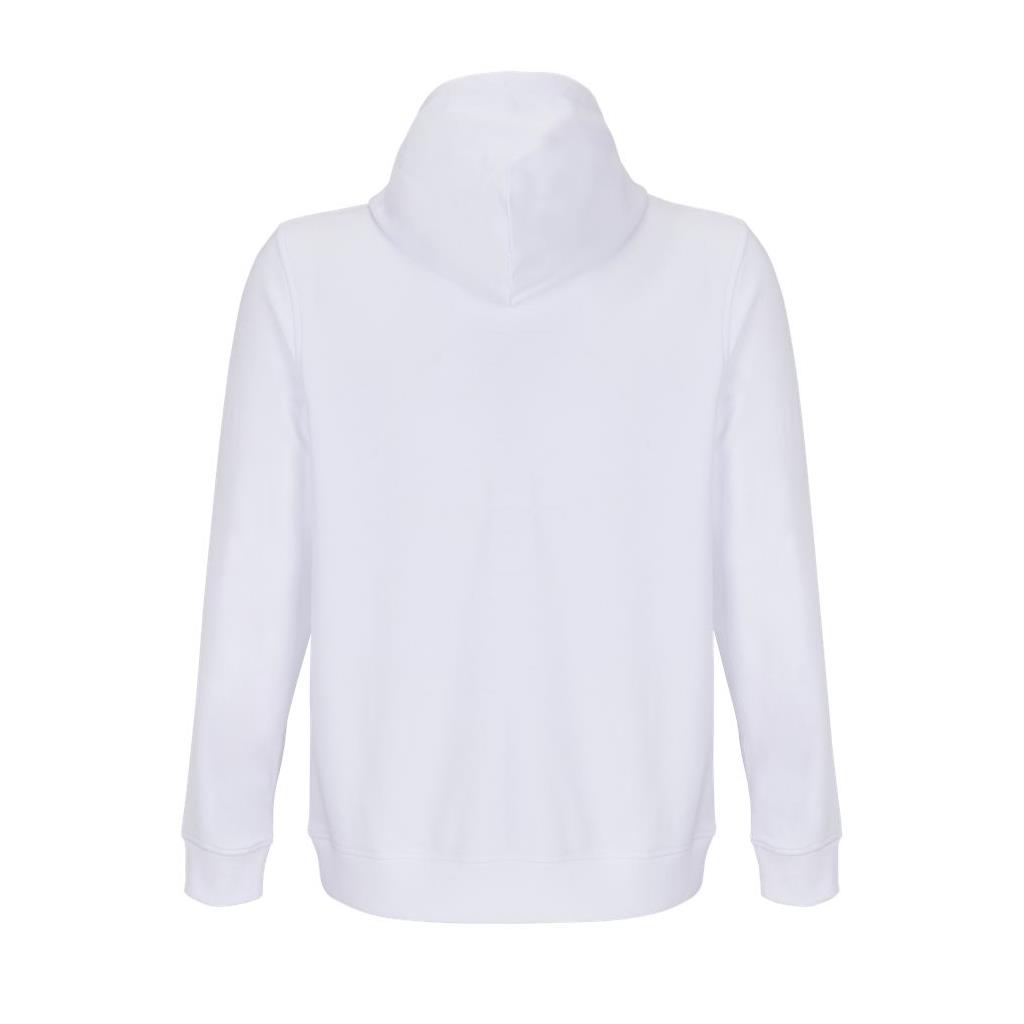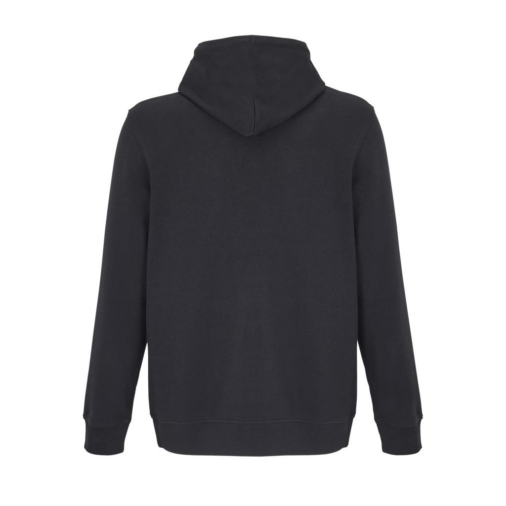 Cortada y cosida - Mangas montadas - Acabado de acanalé 2x2 en puños y bajo - Bolsillo canguro - Media luna y tapacosturas de punto liso en el cuello - Capucha forrada de punto liso - Cordón de ajuste con ojales y topes de metal