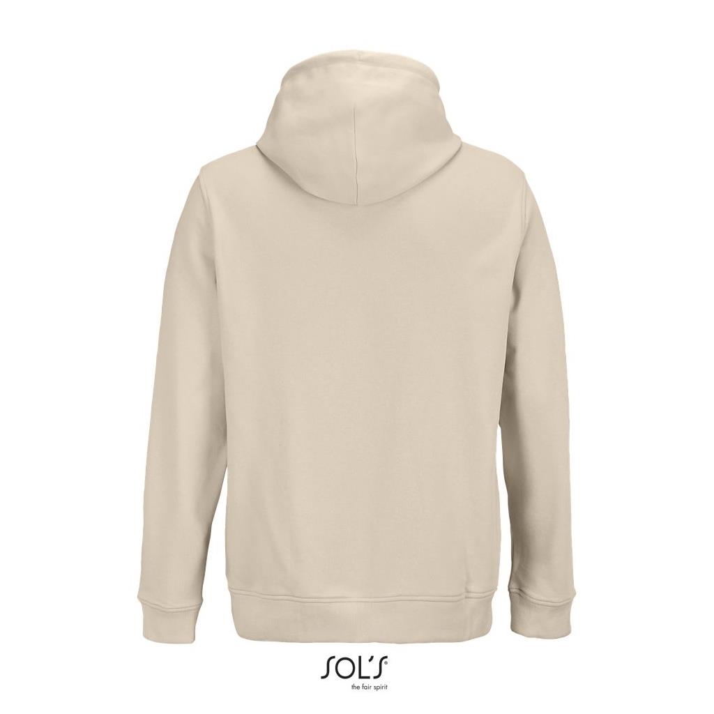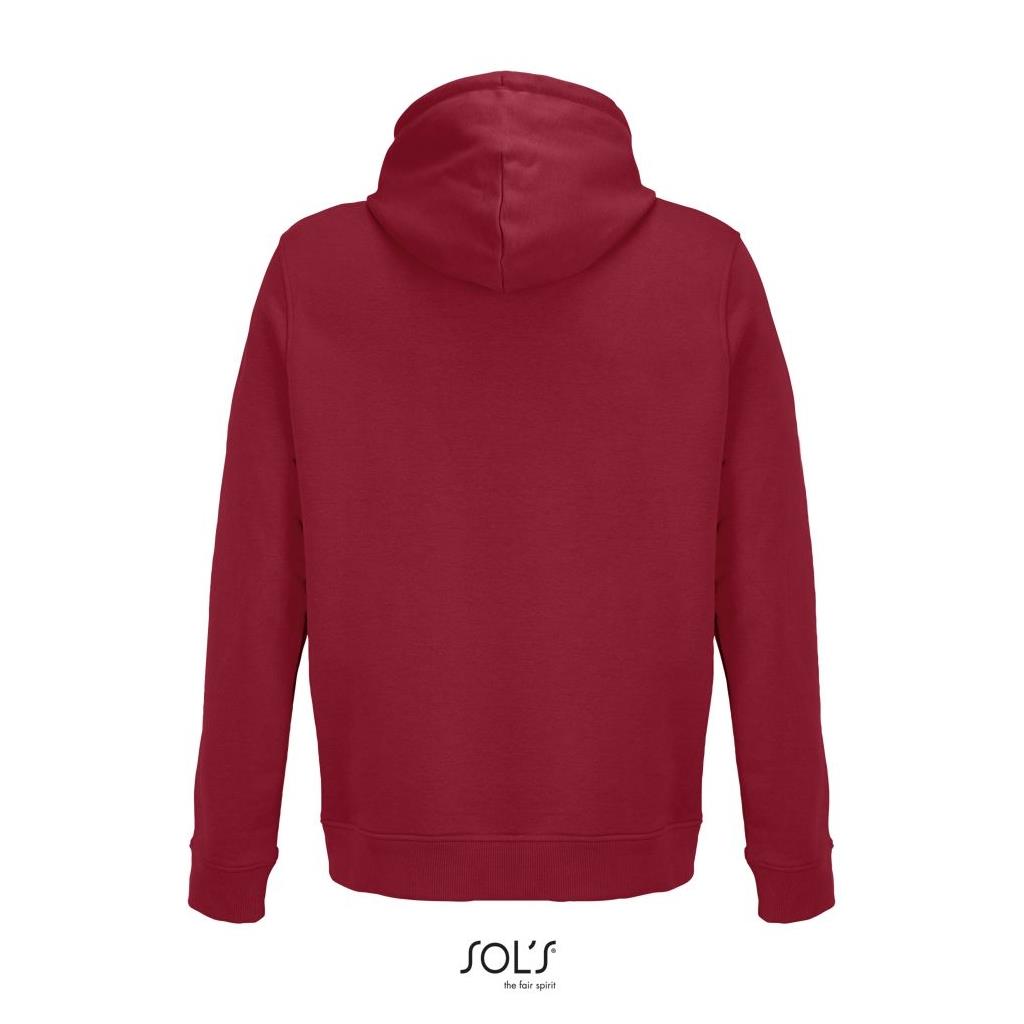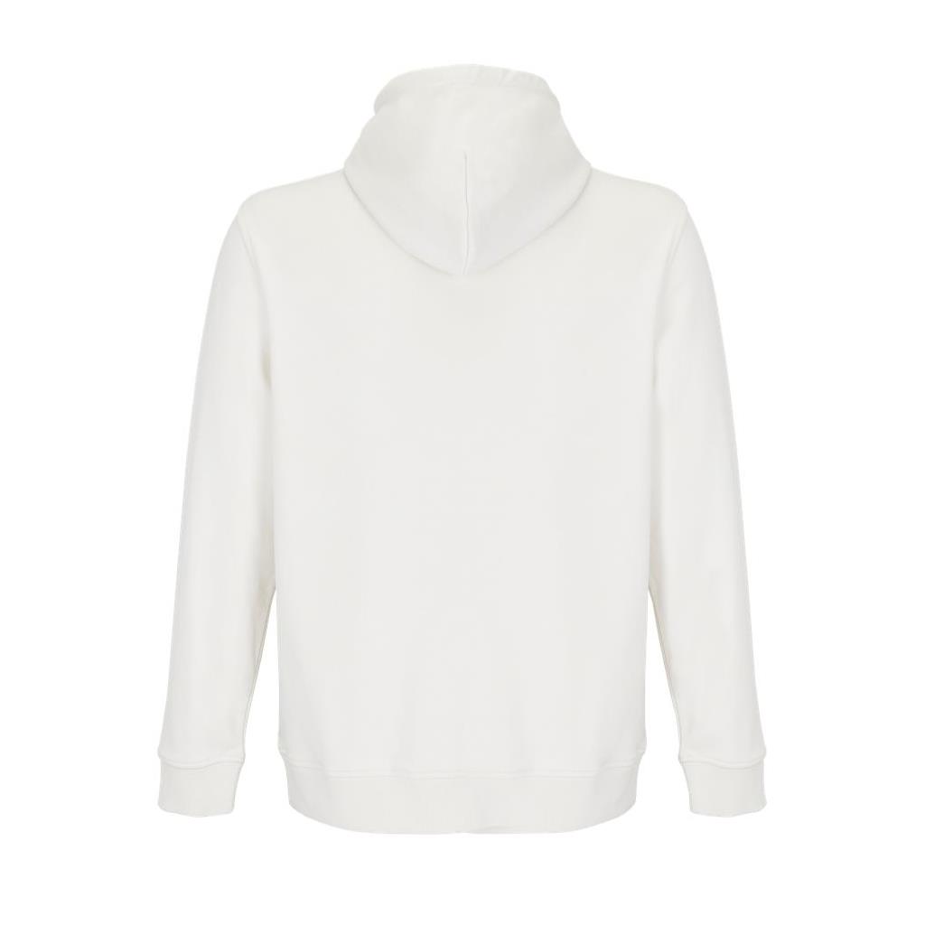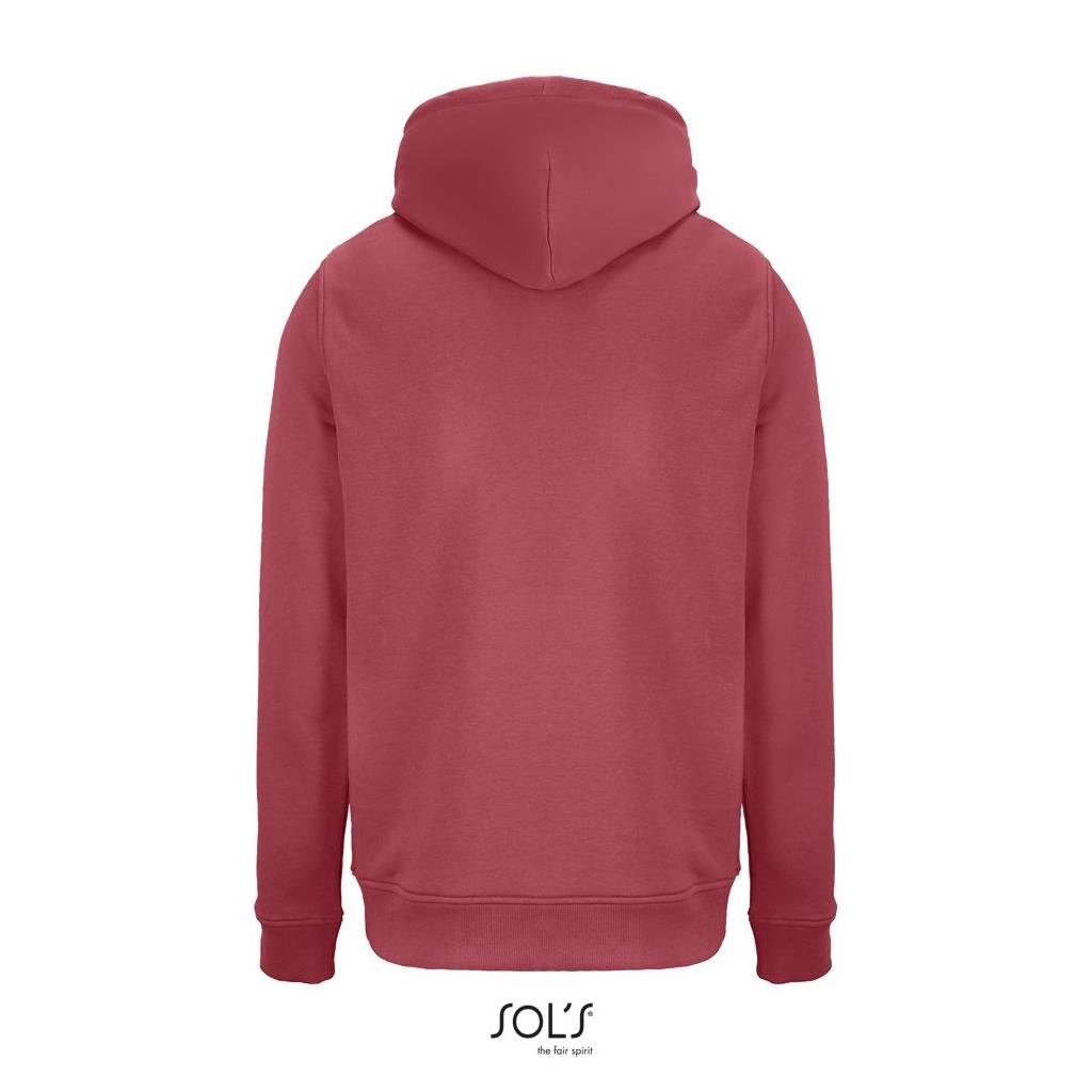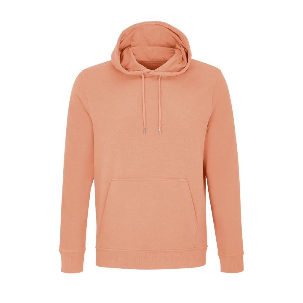 Cortada y cosida - Mangas montadas - Acabado de acanalé 2x2 en puños y bajo - Bolsillo canguro - Media luna y tapacosturas de punto liso en el cuello - Capucha forrada de punto liso - Cordón de ajuste con ojales y topes de metal