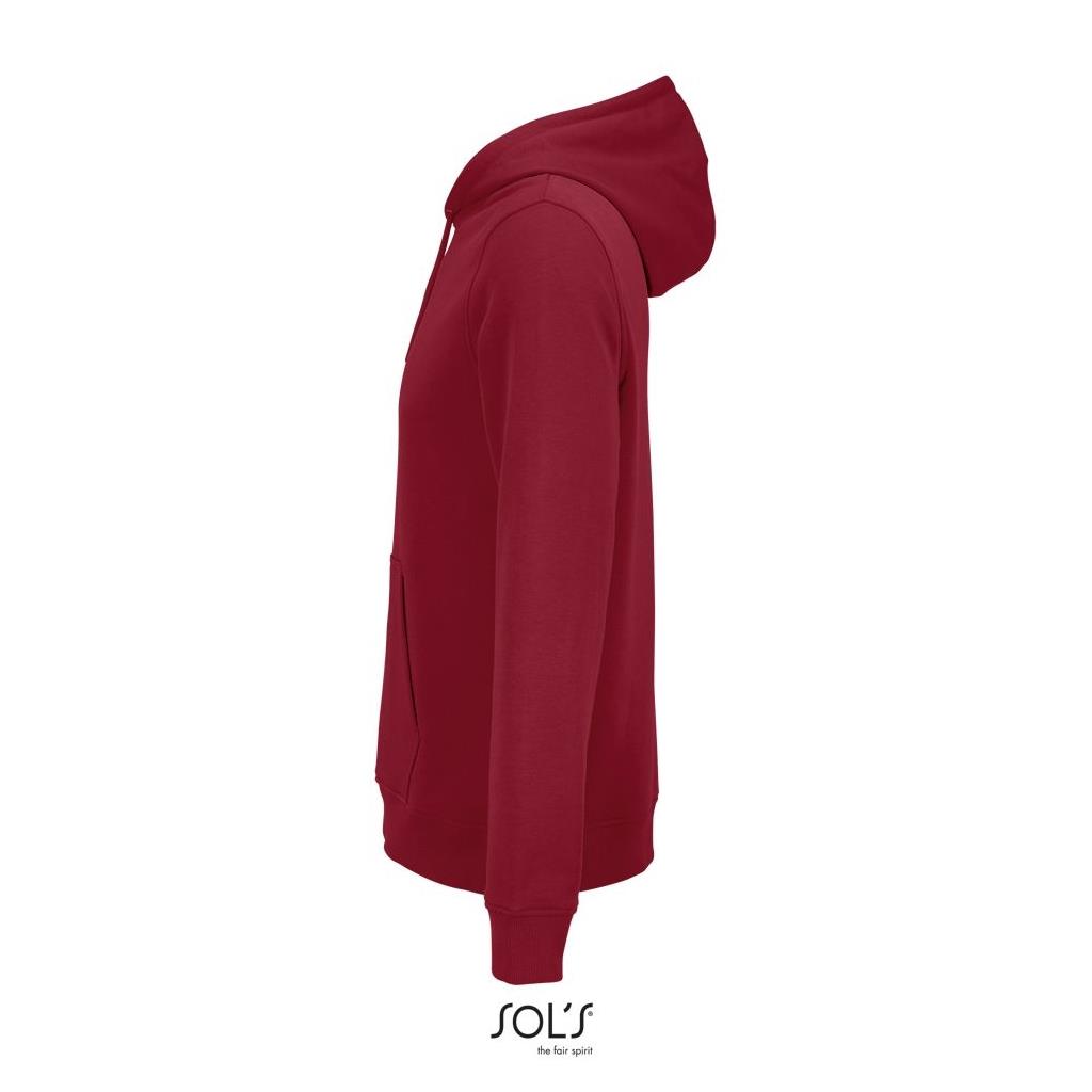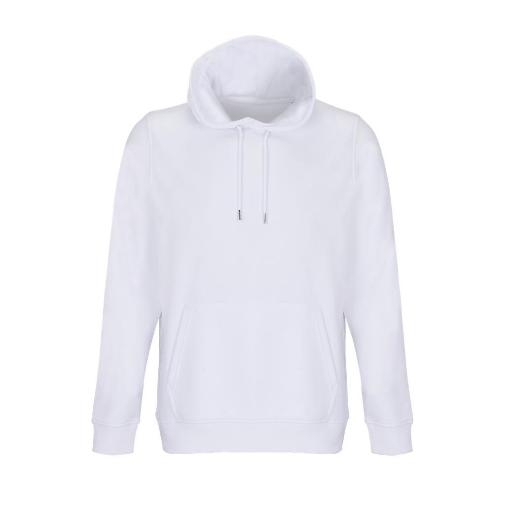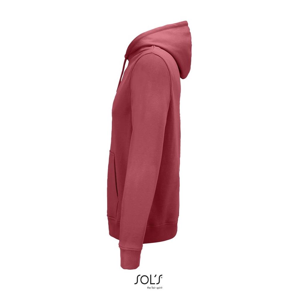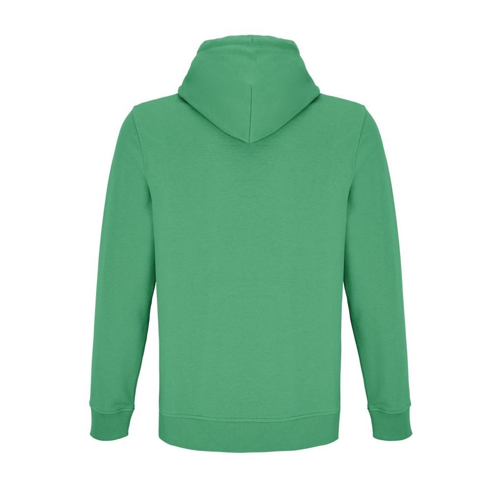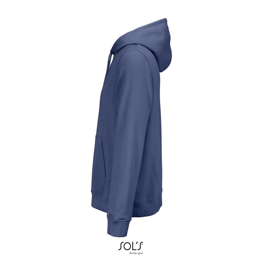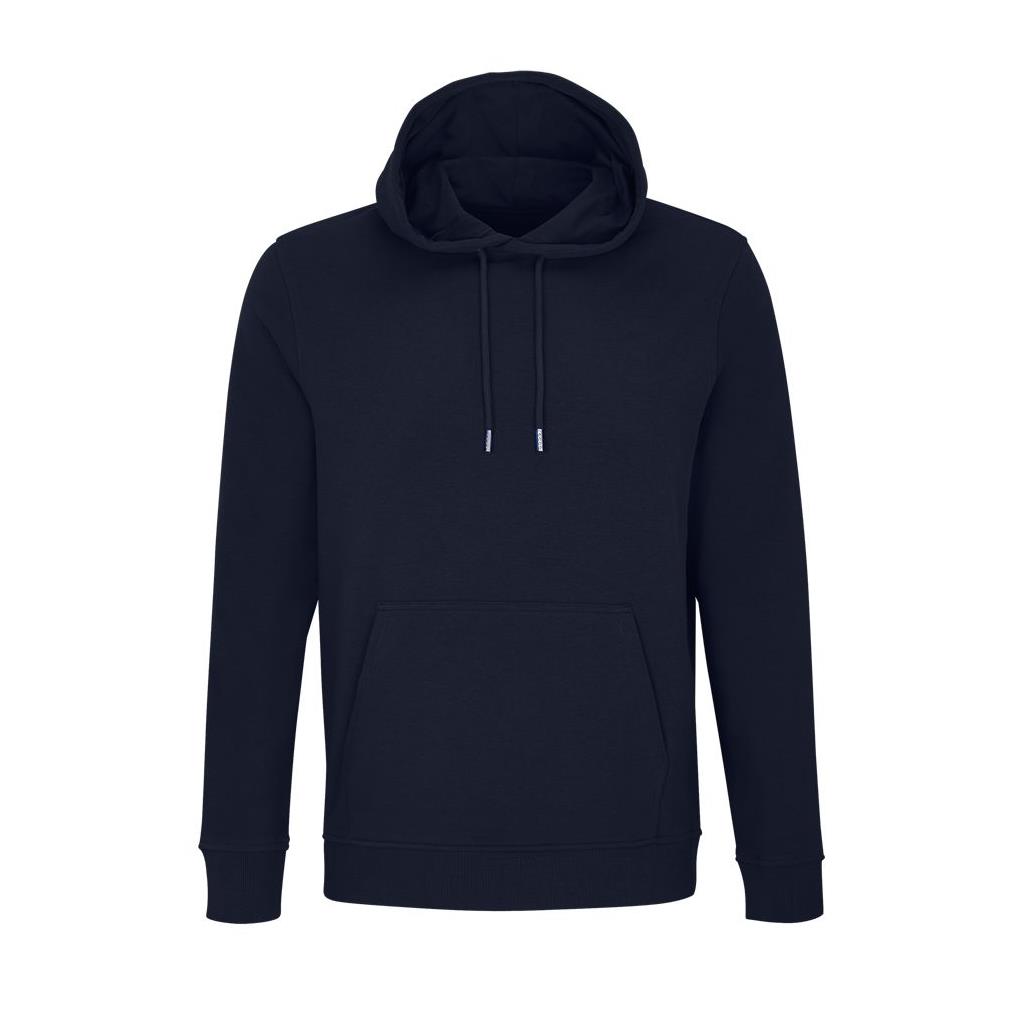 Cortada y cosida - Mangas montadas - Acabado de acanalé 2x2 en puños y bajo - Bolsillo canguro - Media luna y tapacosturas de punto liso en el cuello - Capucha forrada de punto liso - Cordón de ajuste con ojales y topes de metal