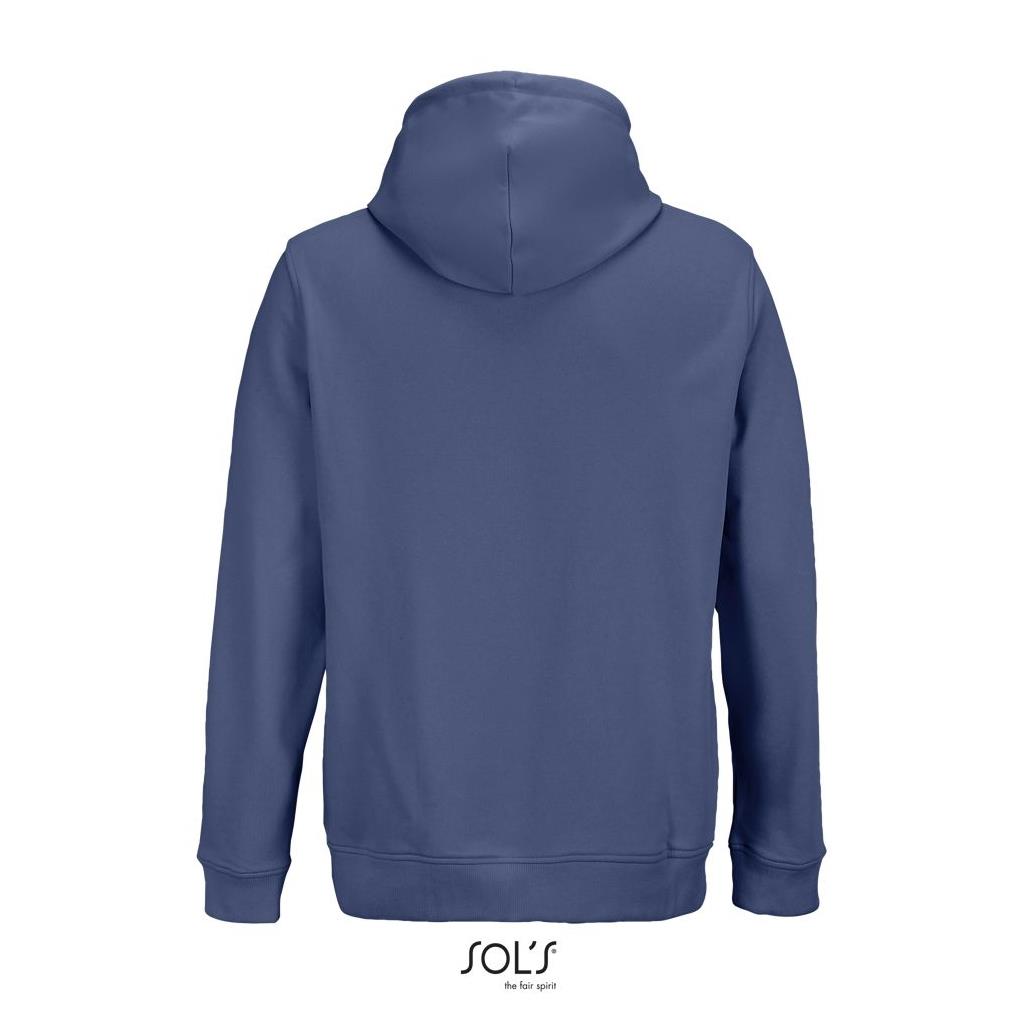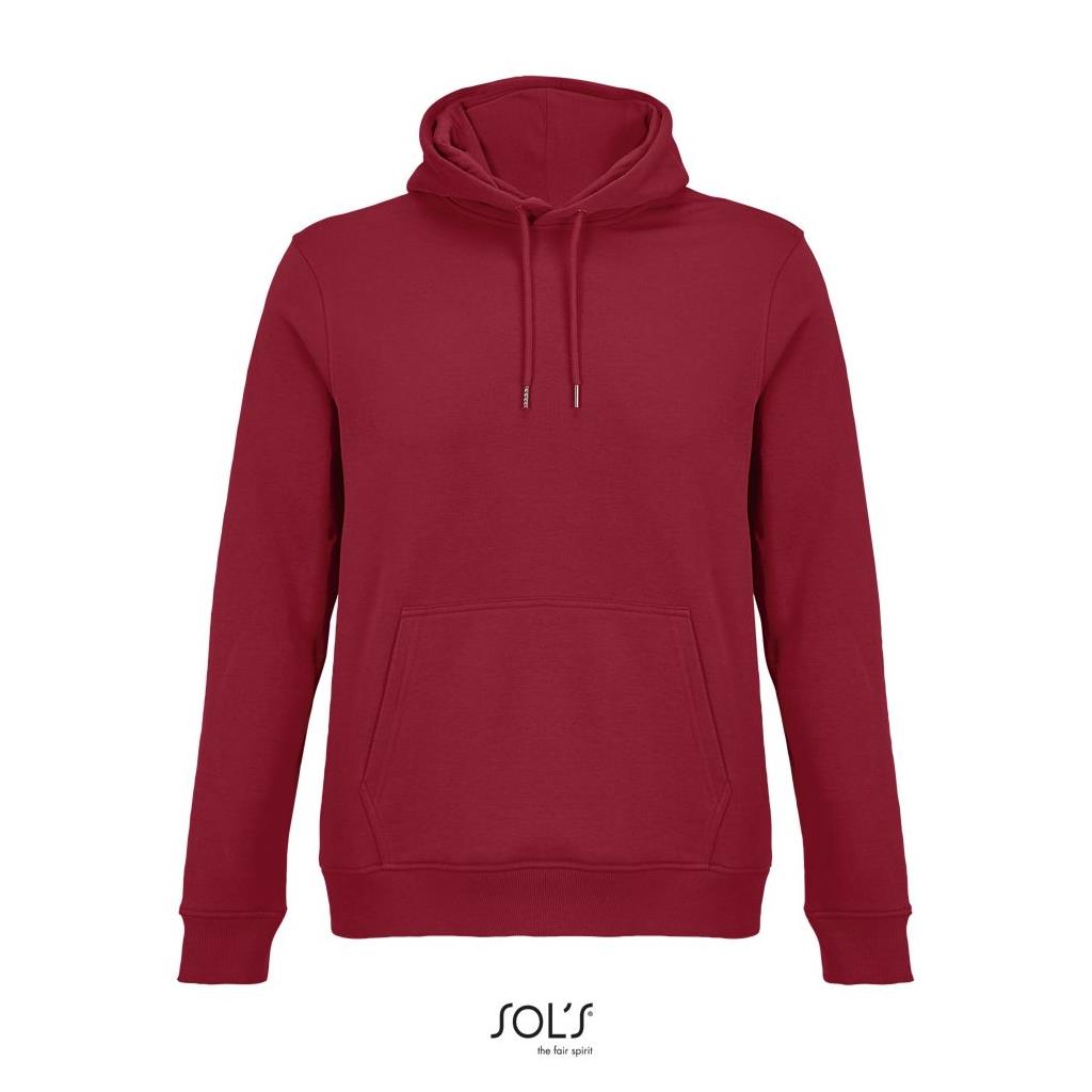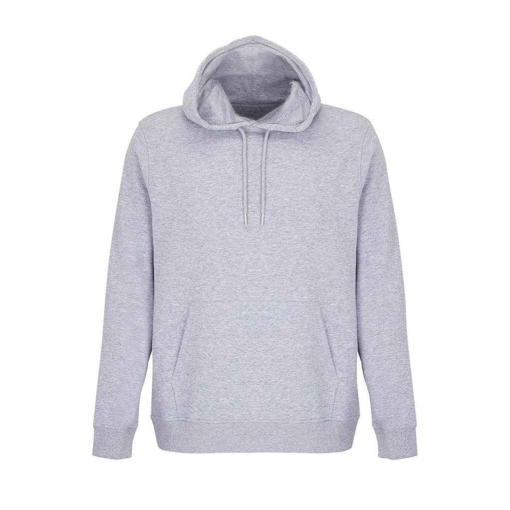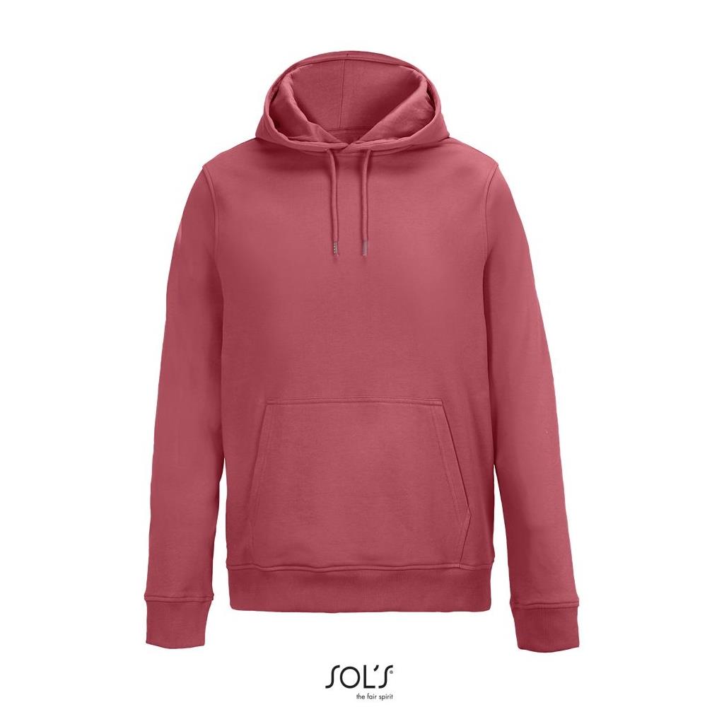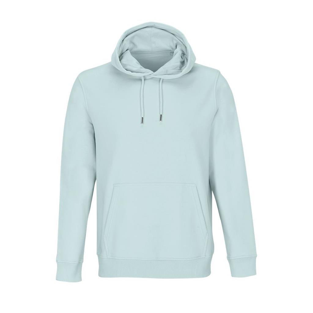 Cortada y cosida - Mangas montadas - Acabado de acanalé 2x2 en puños y bajo - Bolsillo canguro - Media luna y tapacosturas de punto liso en el cuello - Capucha forrada de punto liso - Cordón de ajuste con ojales y topes de metal