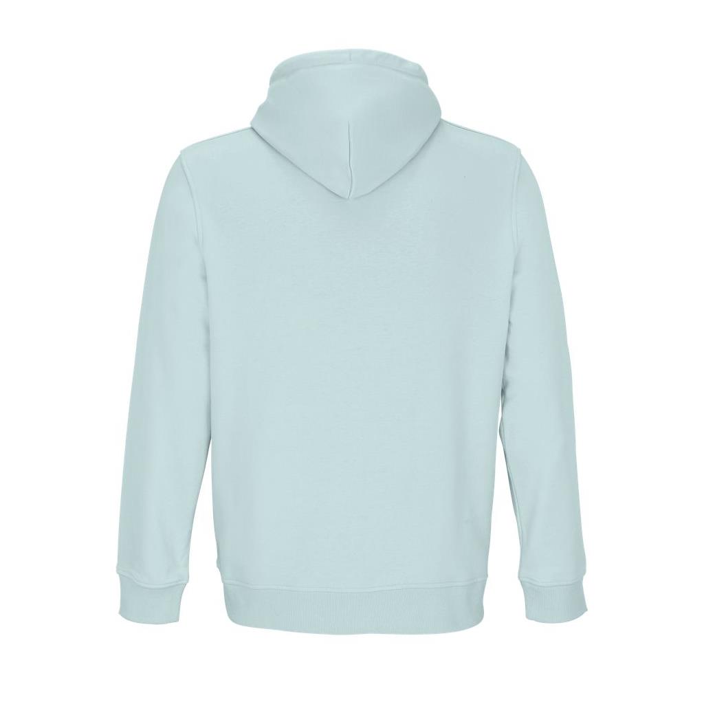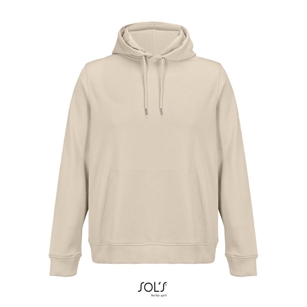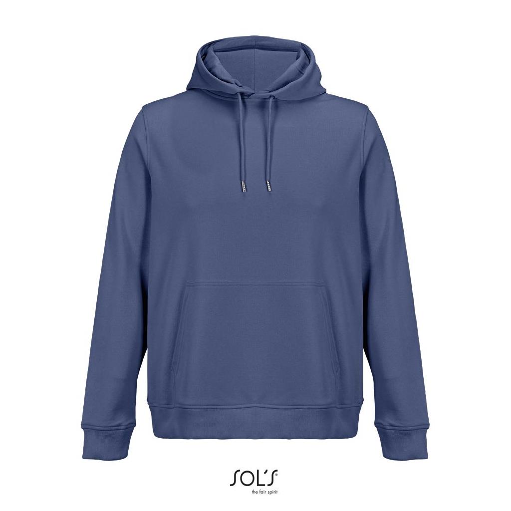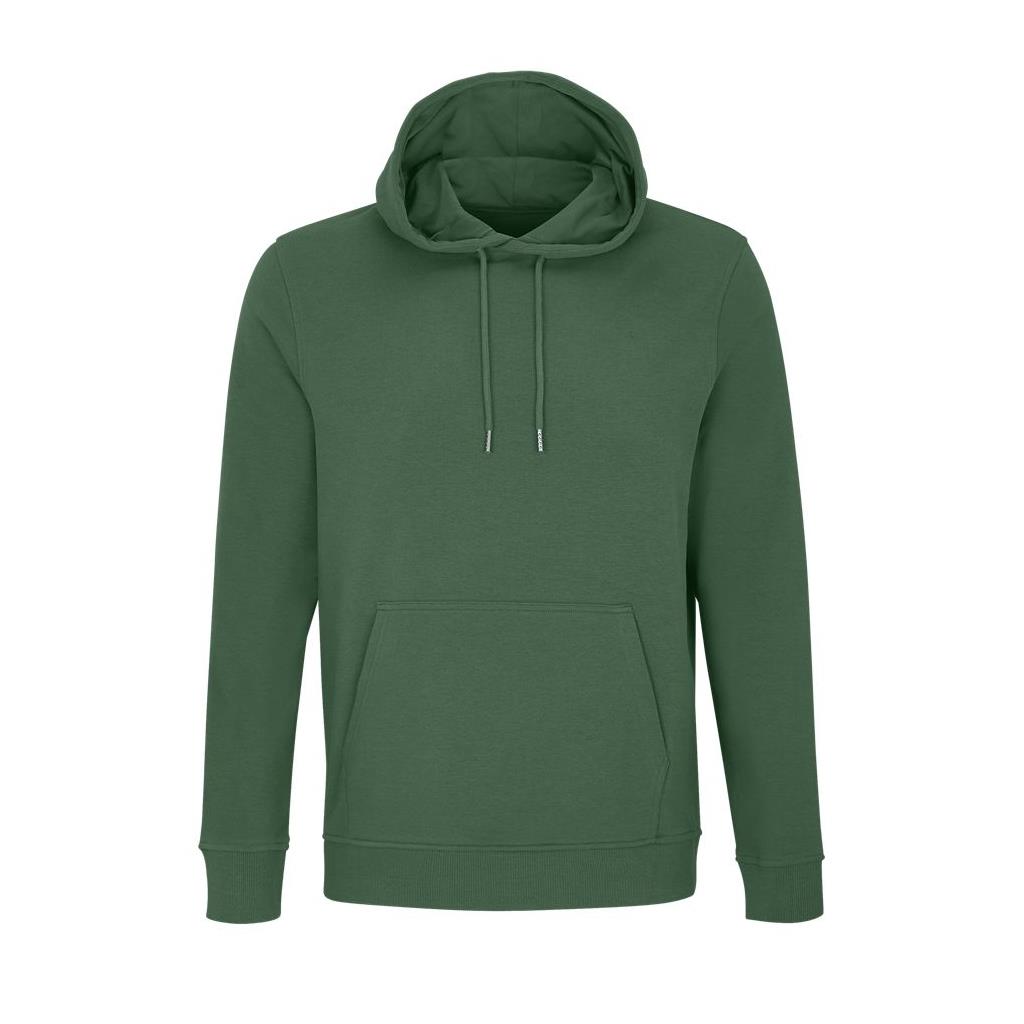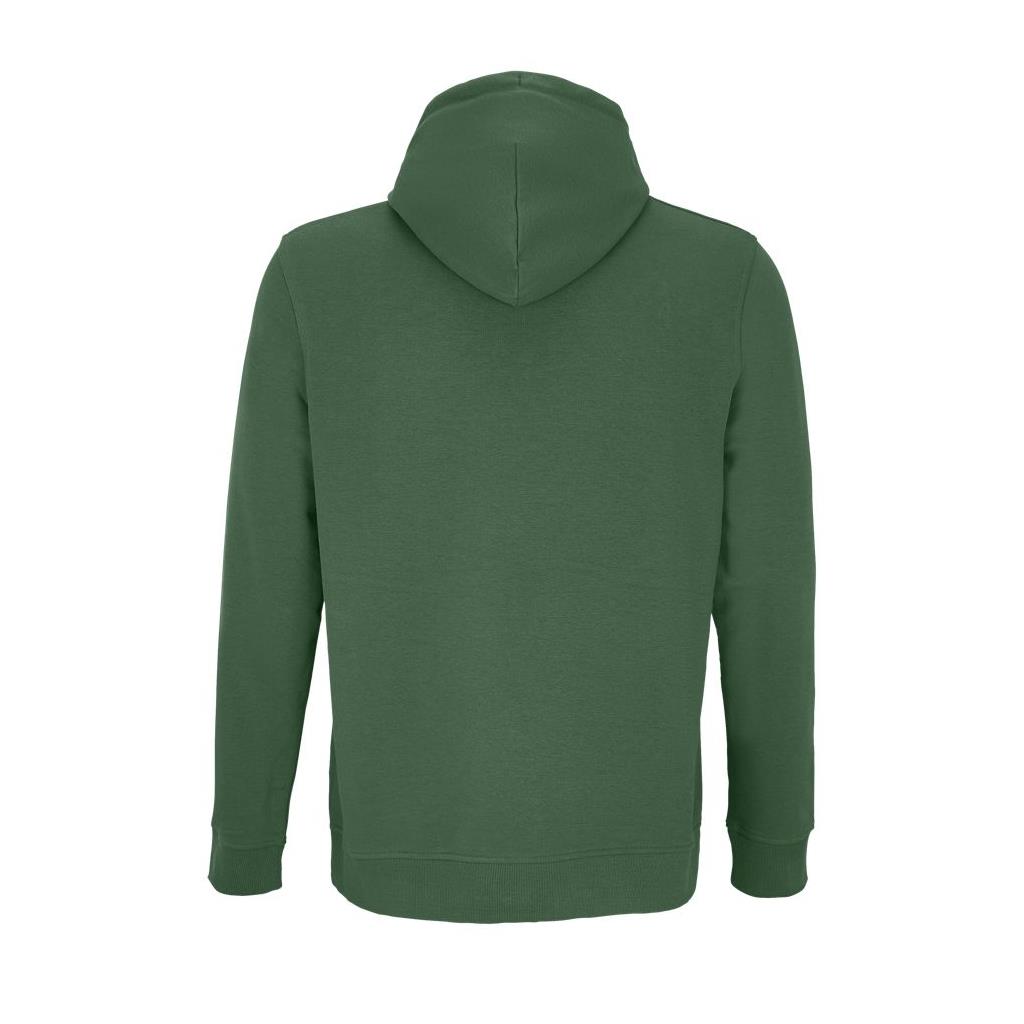 Cortada y cosida - Mangas montadas - Acabado de acanalé 2x2 en puños y bajo - Bolsillo canguro - Media luna y tapacosturas de punto liso en el cuello - Capucha forrada de punto liso - Cordón de ajuste con ojales y topes de metal