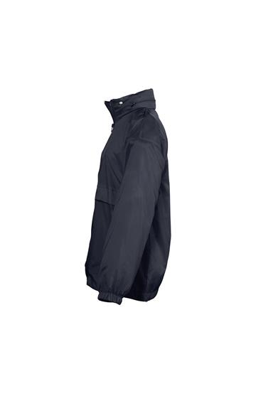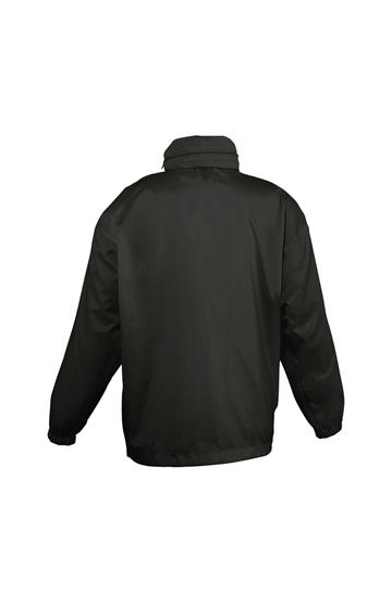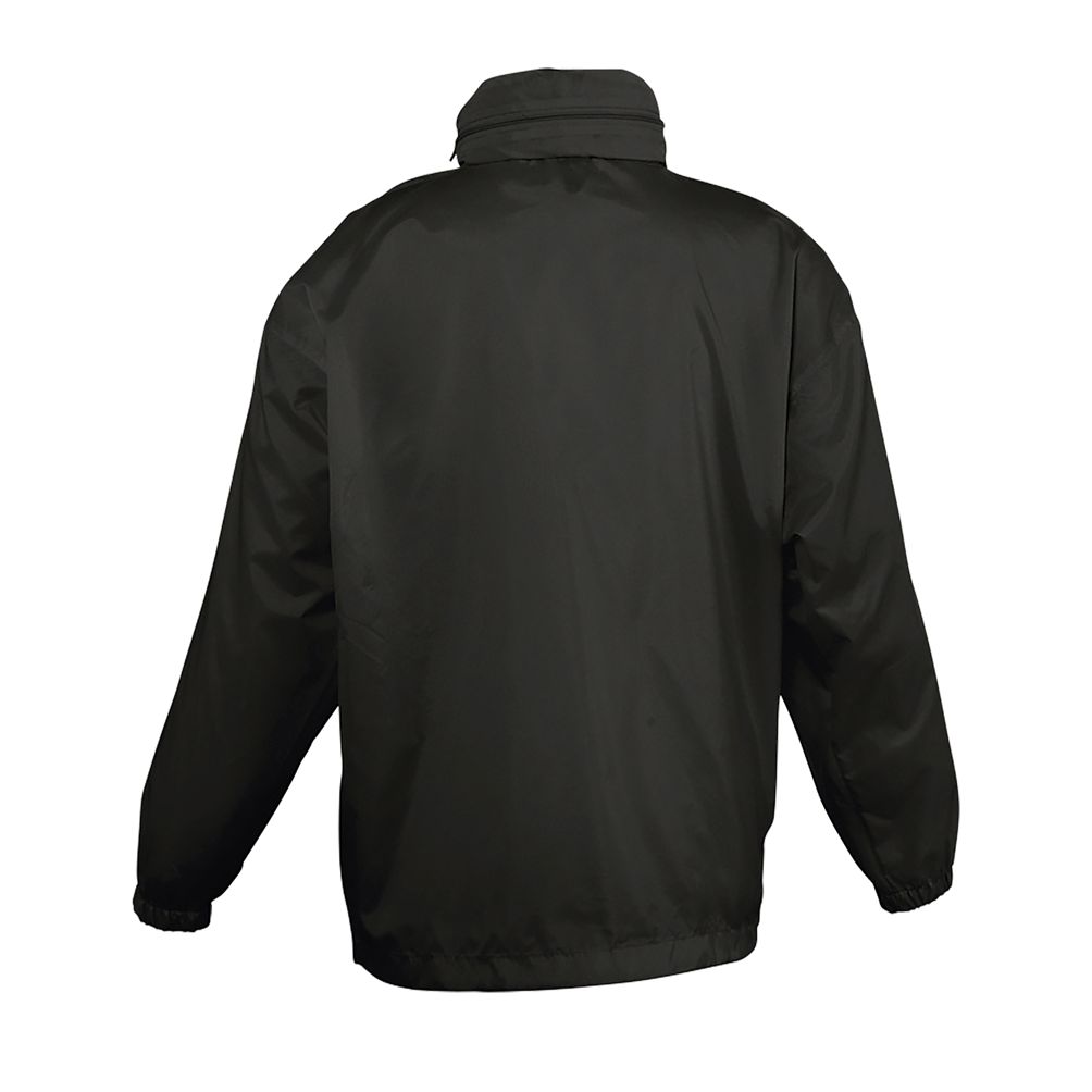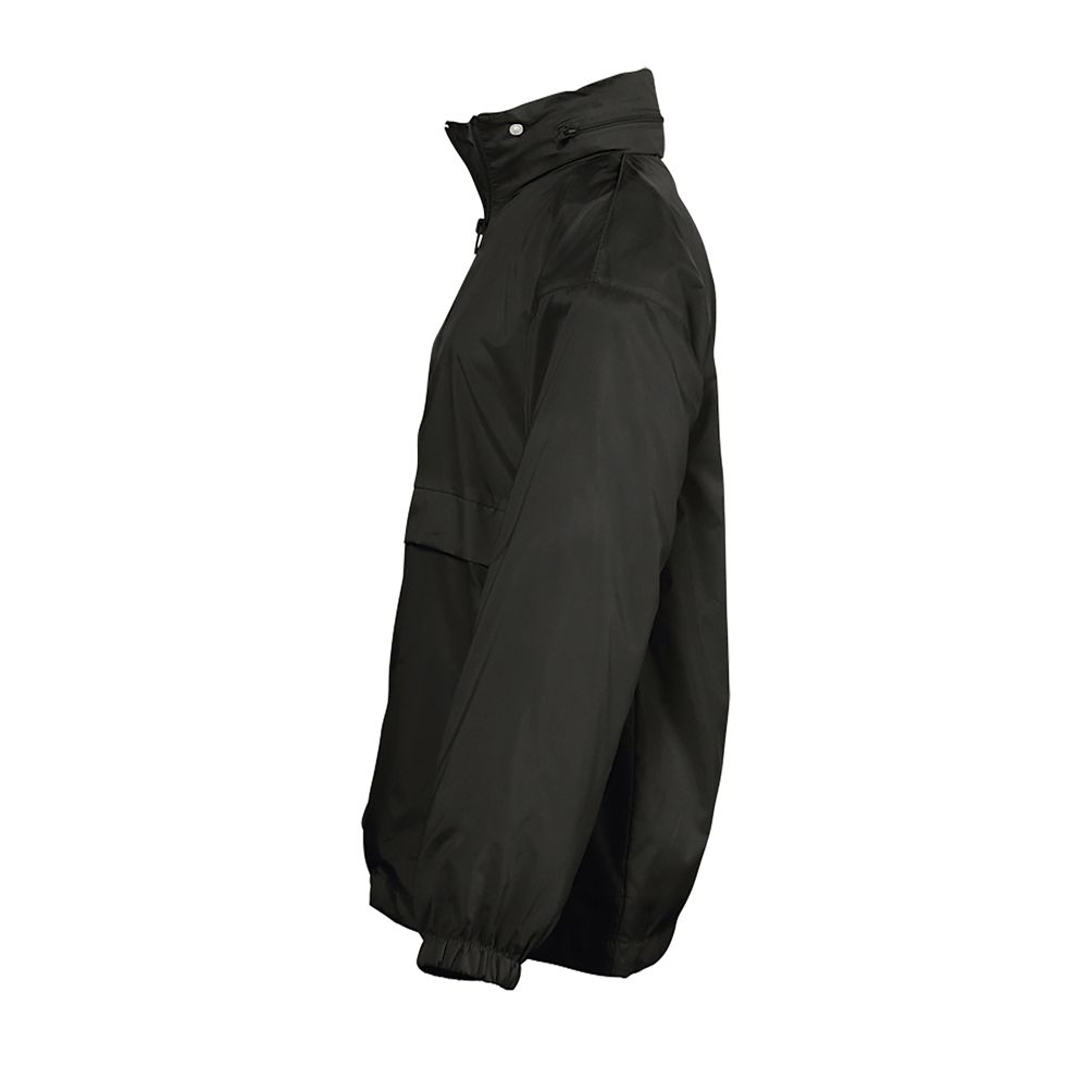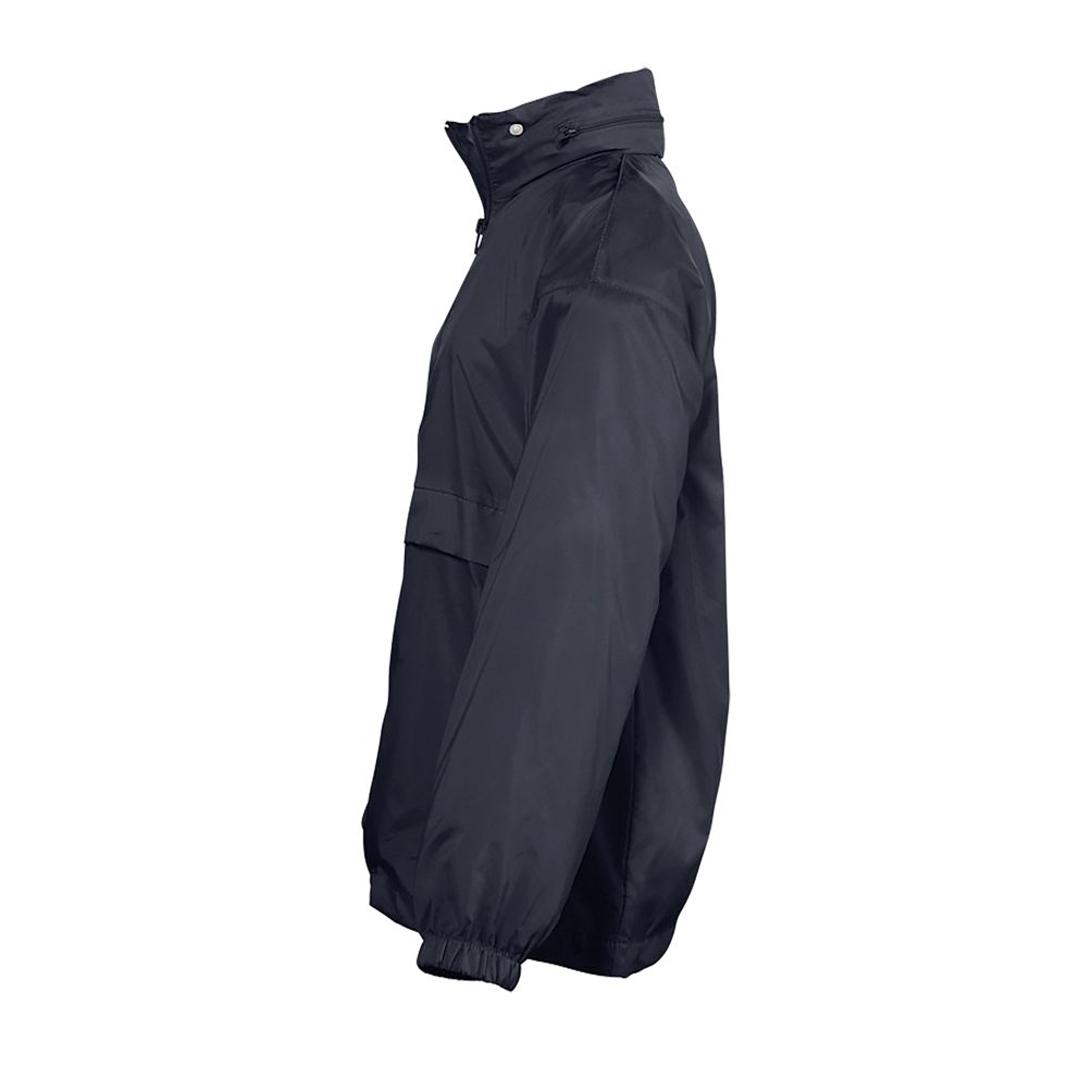 Abertura con cremallera - Capucha doblada en el cuello - 2 bolsillos exteriores cerrados con cremallera - Sistema de plegado “in bag” con elásticos anudados en cintura - Aberturas de ventilación - Cordón interior asegurado en la base