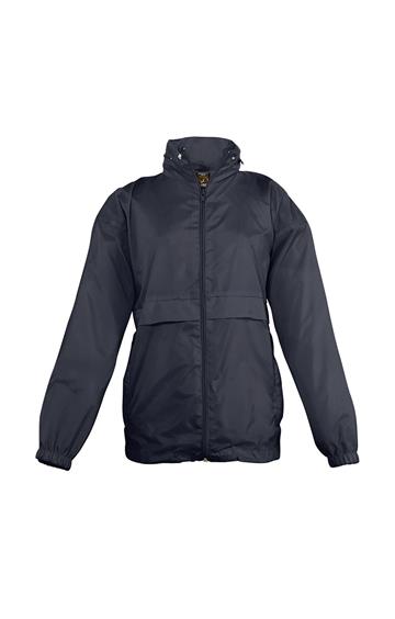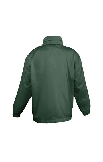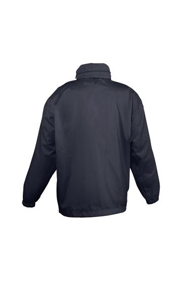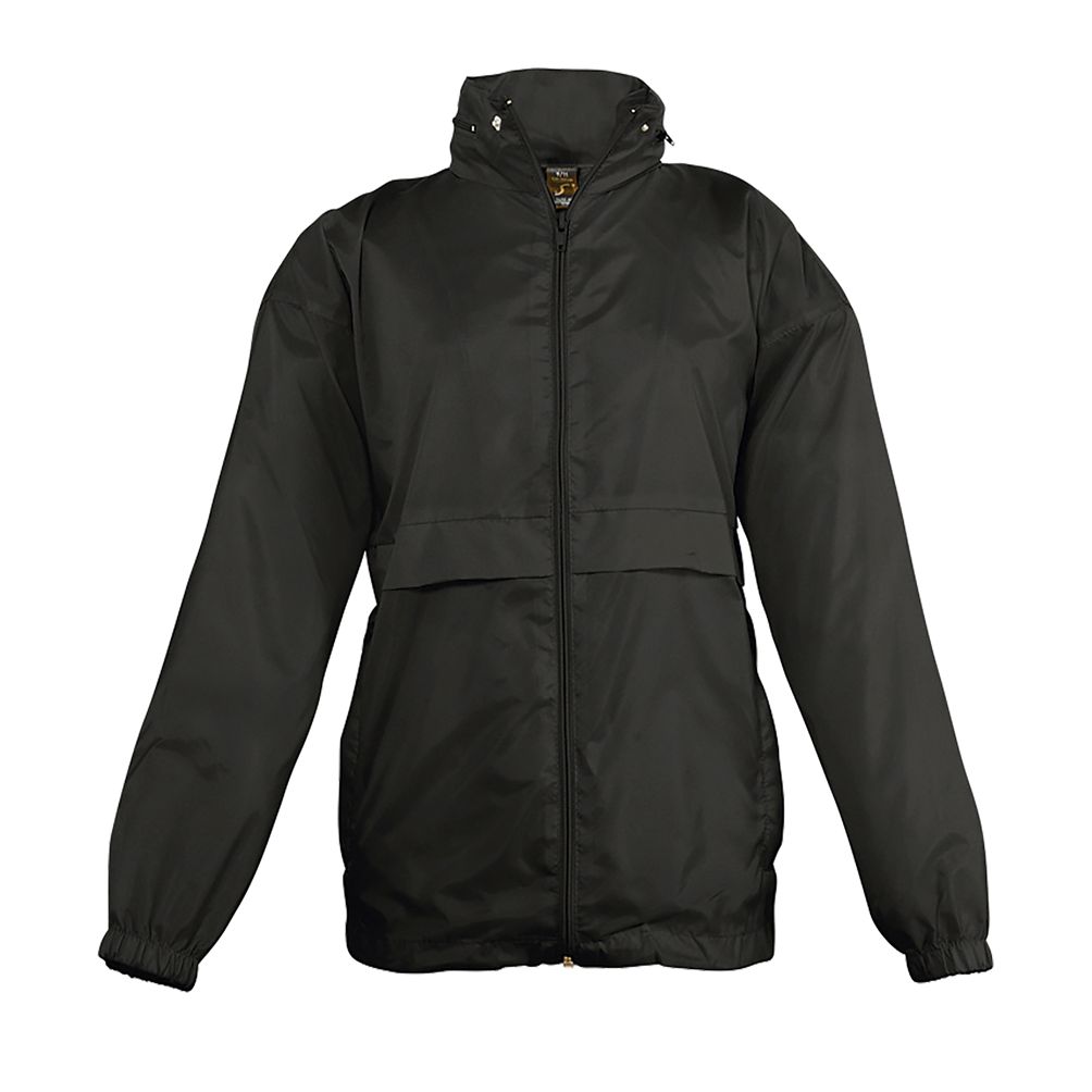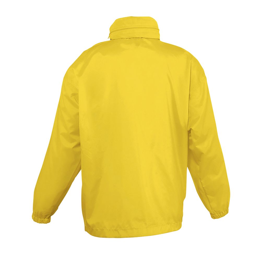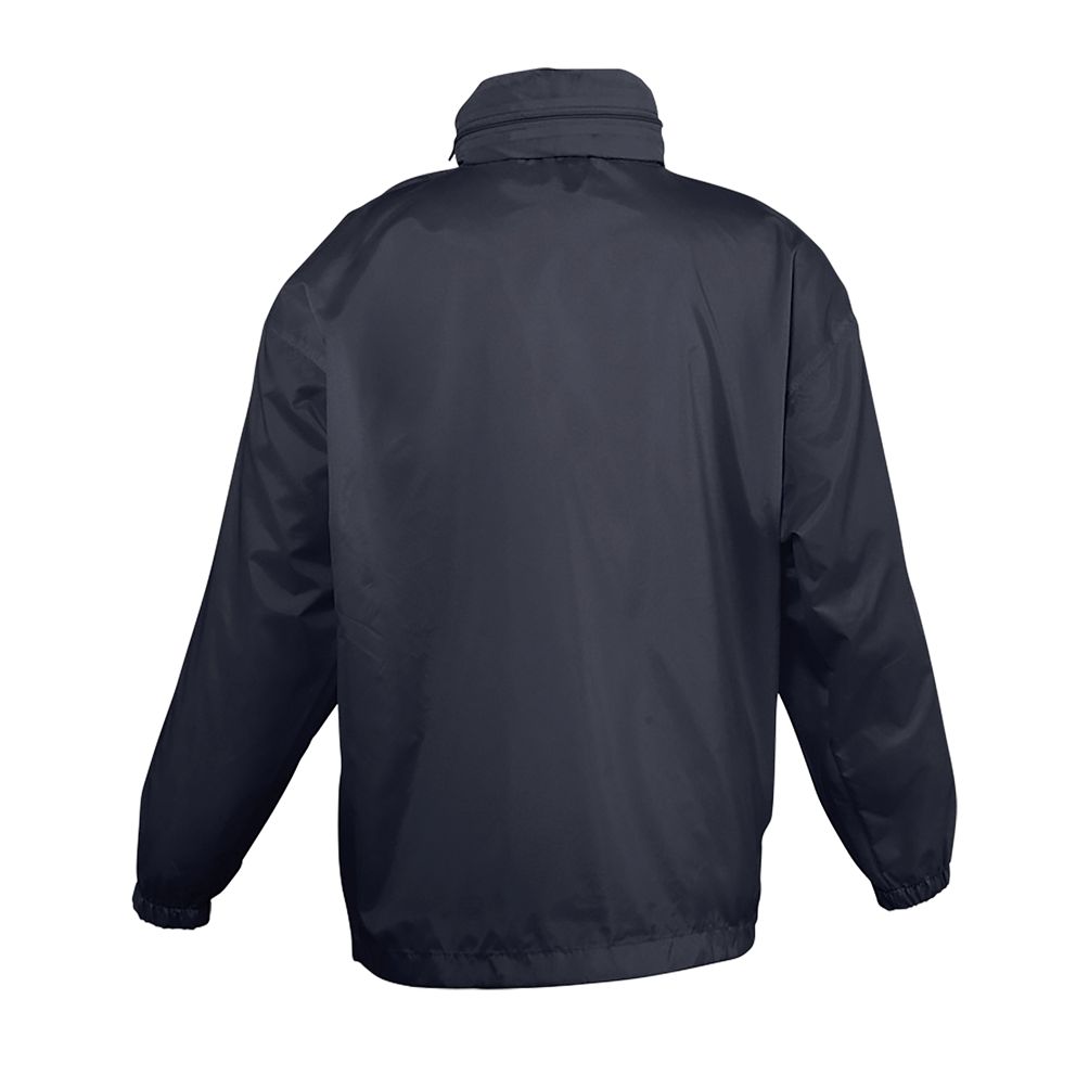 Abertura con cremallera - Capucha doblada en el cuello - 2 bolsillos exteriores cerrados con cremallera - Sistema de plegado “in bag” con elásticos anudados en cintura - Aberturas de ventilación - Cordón interior asegurado en la base