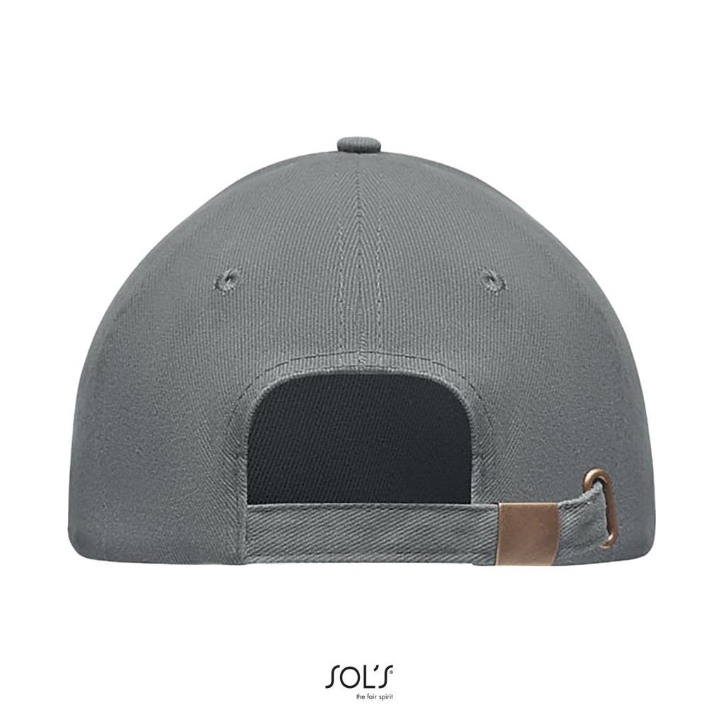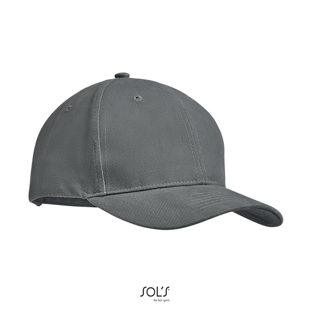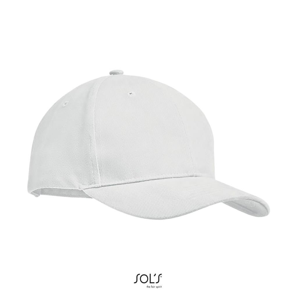 Forma de 6 paneles - Paneles frontales reforzados y estructurados por un grueso termo - Visera precurvada - Diadema acolchada de sarga de algodón acolchada para mayor comodidad - 6 ojales bordados - Cierre trasero de hebilla de metal moderna