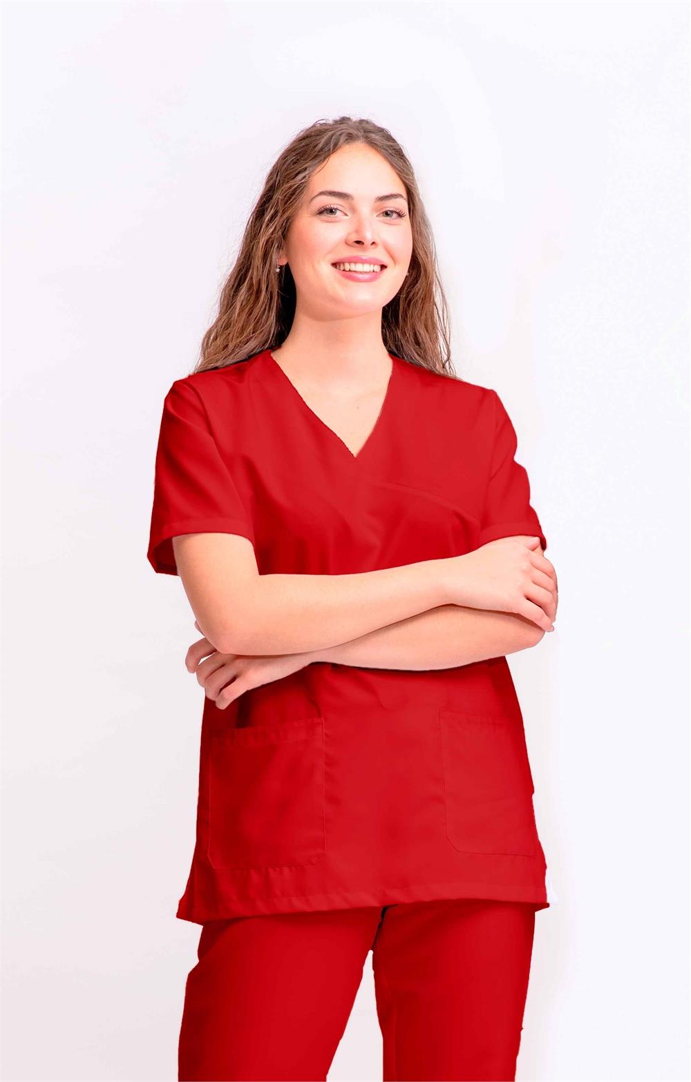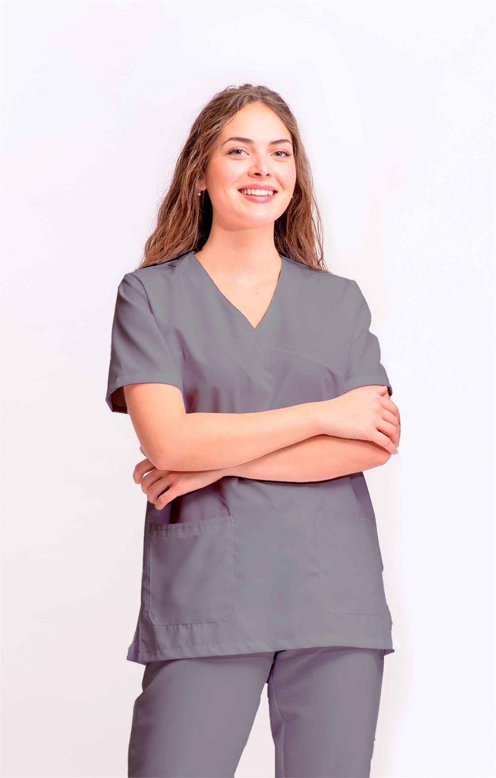 Casaca cuello pico - Cruzada - Manga corta - Dos bolsillos